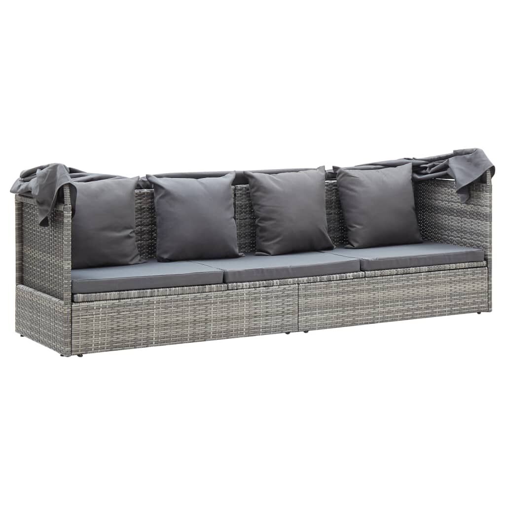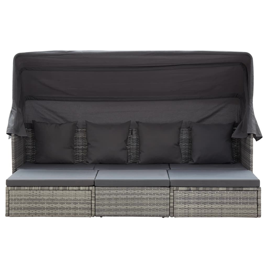 This day bed is an ideal hideaway for relaxing and enjoying your leisure time near the swimming pool, in your garden, on your patio, etc. You can show your appreciation for ambiance as well as your trendy lifestyle with this elegant sun lounger. The lounge bed is made of PE rattan, which is water- resistant, UV resistant and easy to clean. The table can be lifted up to meet your actual needs. Thanks to the powder-coated steel frame, it is both stable and durable. The thick cushions and pillows are soft, making this sun bed pretty comfortable. The removable and washable covers are equipped with zippers. The roof protects you from the sun when you read or relax on sunny days. Our sun lounger is easy to assemble. Note: We recommend covering the sun lounger in bad weather like the rain, snow or frost.