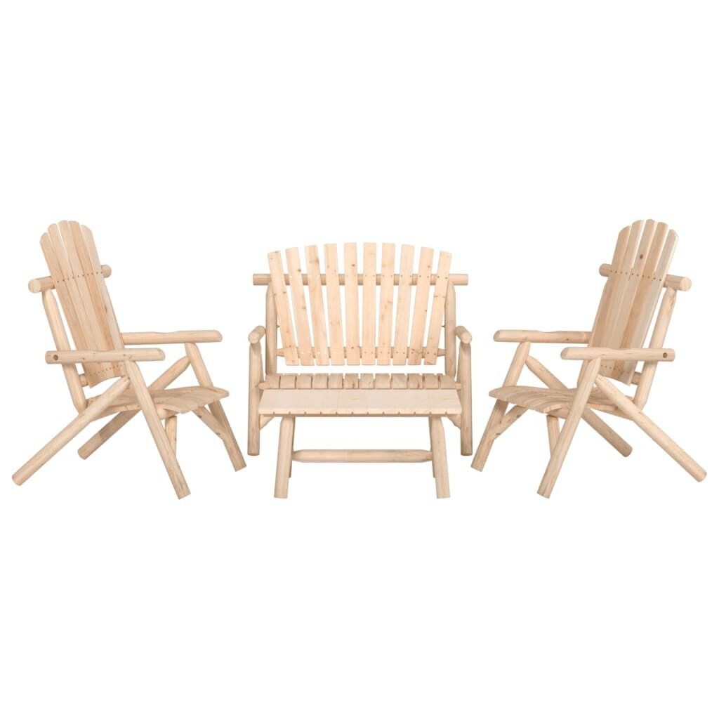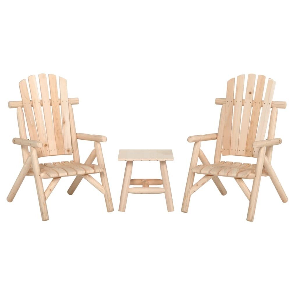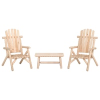 $315.83Enjoy a cosy leisure time with your family in your outdoor space on this wooden garden lounge set! Solid spruce wood: Made of solid spruce wood, the lounge set is durable and stable.Comfortable seat experience: With curved form-fitting seats, armrests, and Adirondack-style backrests, the garden chairs allow you to sit back comfortably after a long day.Sturdy tabletop: The sturdy tabletop of the side table is ideal for placing books, small plants and other decorative items. Good to know:To make sure your outdoor furniture stays beautiful, we recommend protecting it with a waterproof cover.It is recommended to treat the wood with an outdoor paint, in order to extend the lifetime of the product.