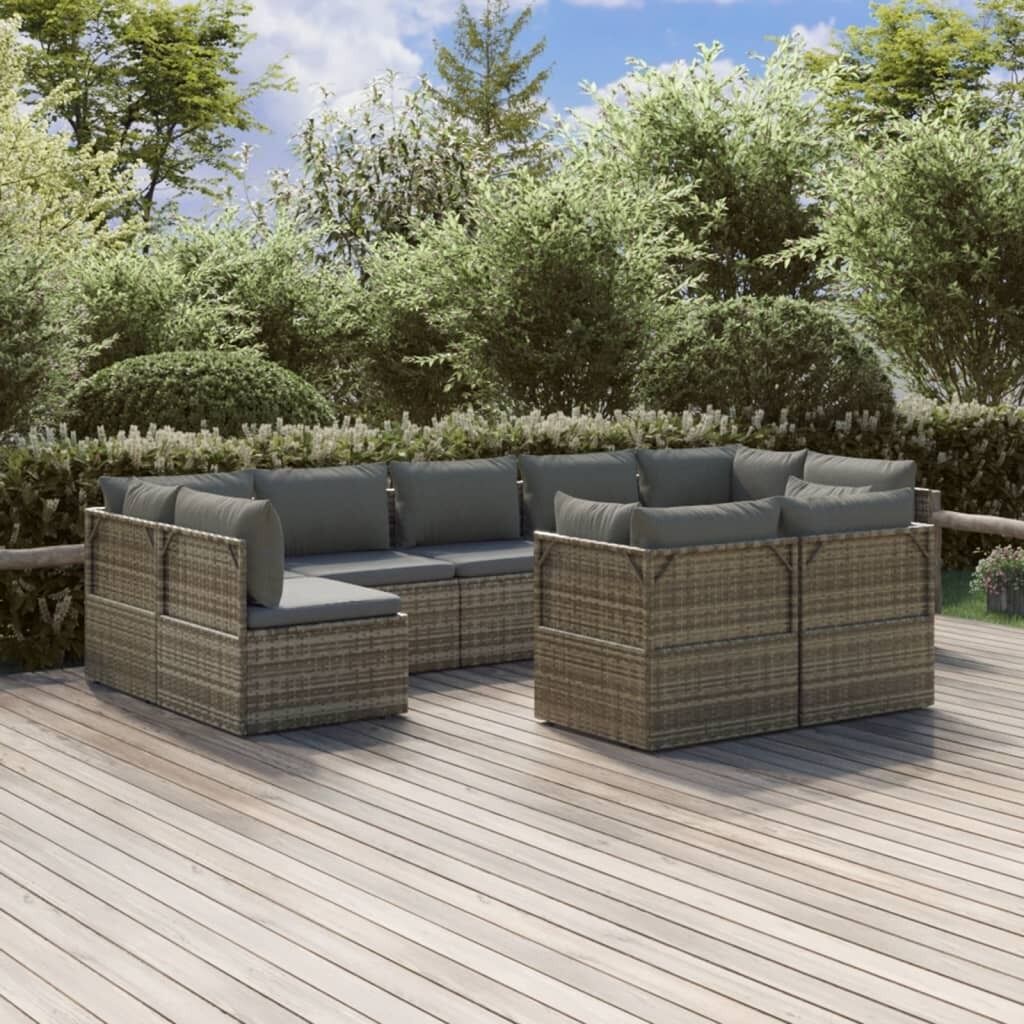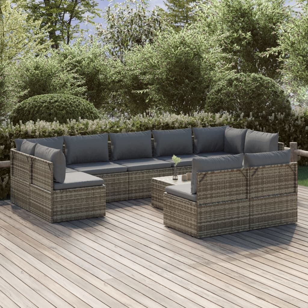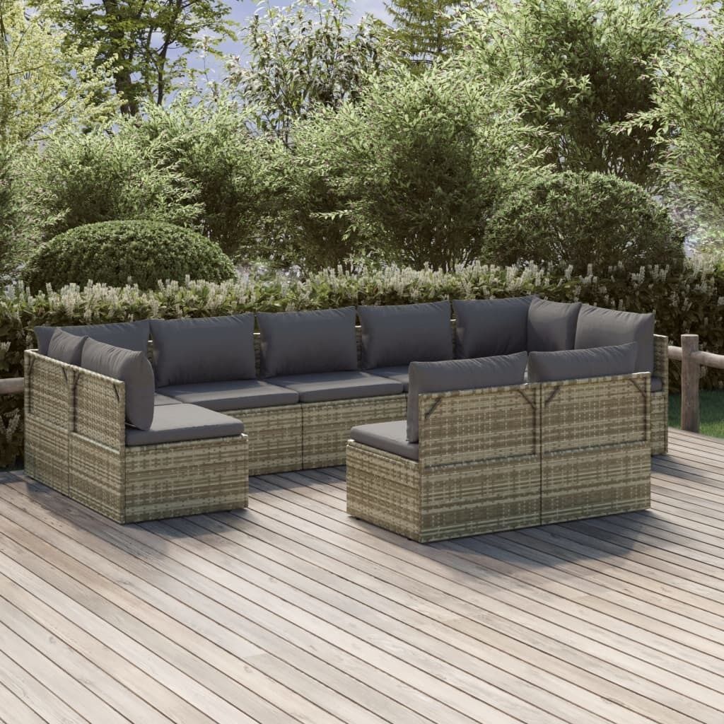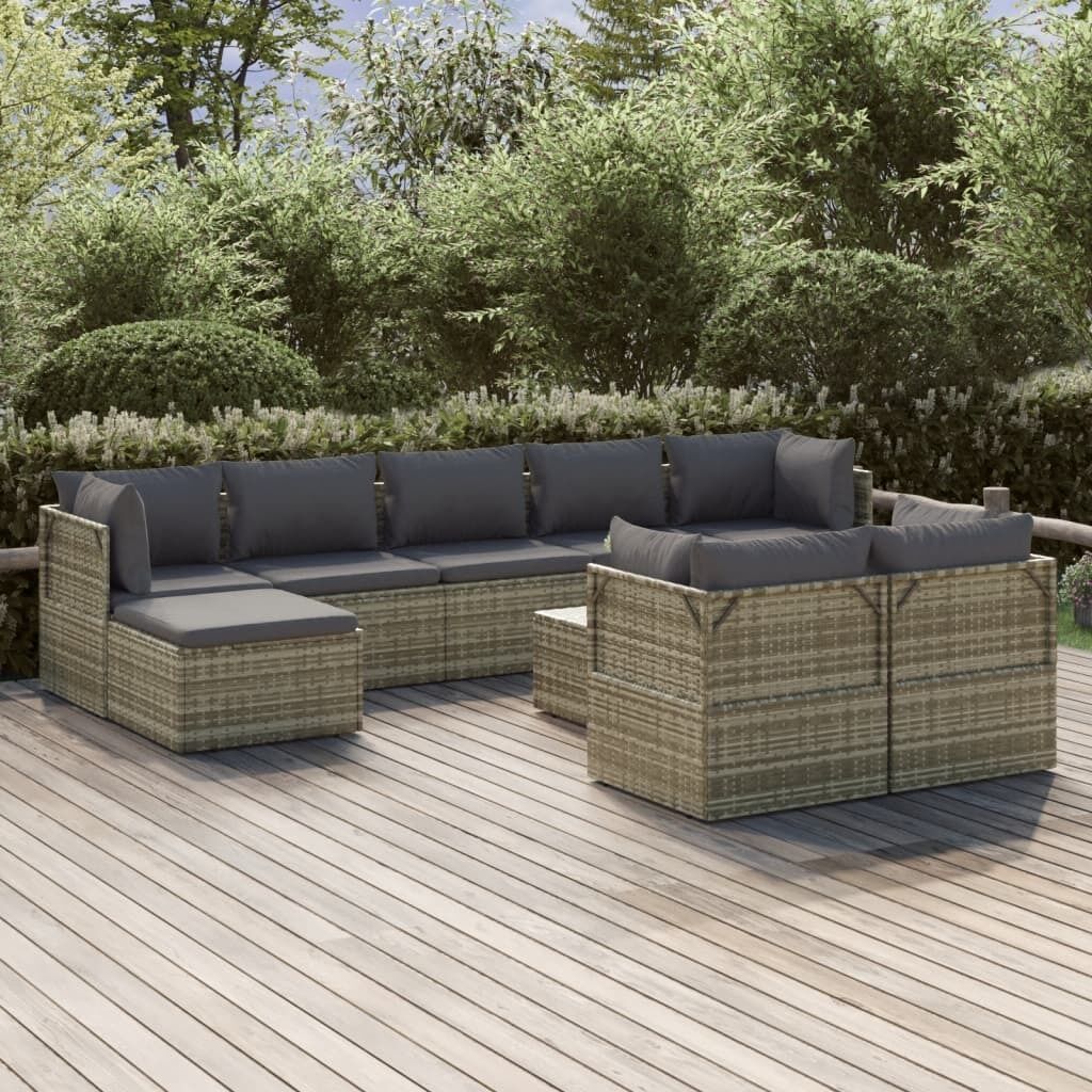 $1,279.33This trendy garden lounge set, featuring an elegant and contemporary design, is a great choice for dining or relaxing in your garden. Durable material: Poly rattan is an exceptional resistance material and durable with different weather conditions. It needs little maintenance. The steel frame ensures sturdiness and stability.Comfortable seat experience: Extra cushions and pillows are included for your comfort.Ample storage space: The storage space makes it easy to keep things organised. It is suitable for storing your cushions, pillows, blankets, toys, and other items.Waterproof bag: The waterproof bag with cover, zipper and hook-and-loop fasteners can keep your belongings safe and protect your items from moisture. Note:In order to extend the life of your outdoor furniture, we recommend you to protect it with a waterproof cover.Each product comes with an assembly manual in the box for easy assembly.