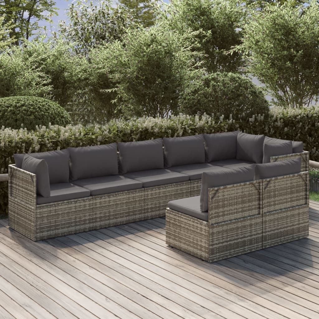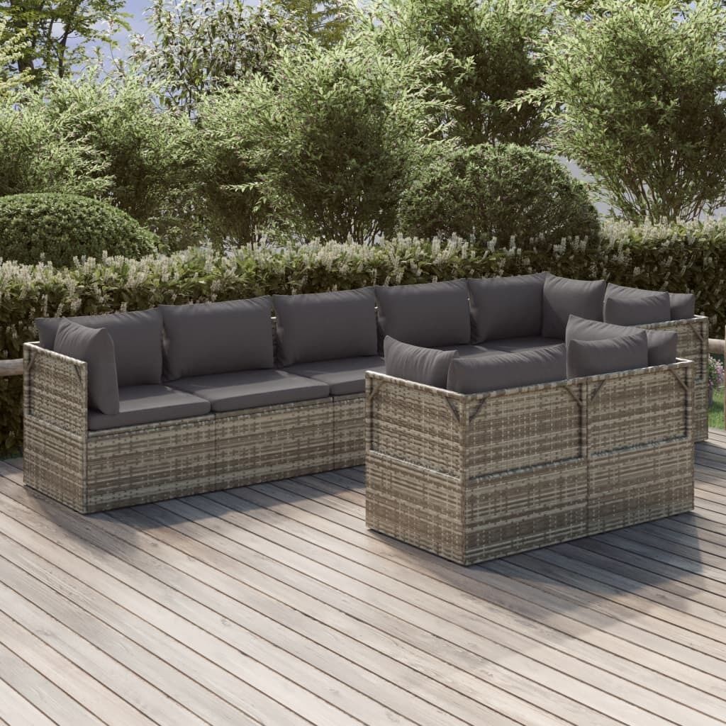 $1,063.13This trendy garden lounge set, featuring an elegant and contemporary design, is a great choice for dining or relaxing in your garden. Durable material: Poly rattan is an exceptional resistance material and durable with different weather conditions. It needs little maintenance. The steel frame ensures sturdiness and stability.Comfortable seat experience: Extra cushions and pillows are included for your comfort.Ample storage space: The storage space makes it easy to keep things organised. It is suitable for storing your cushions, pillows, blankets, toys, and other items.Waterproof bag: The waterproof bag with cover, zipper and hook-and-loop fasteners can keep your belongings safe and protect your items from moisture. Note:In order to extend the life of your outdoor furniture, we recommend you to protect it with a waterproof cover.Each product comes with an assembly manual in the box for easy assembly.