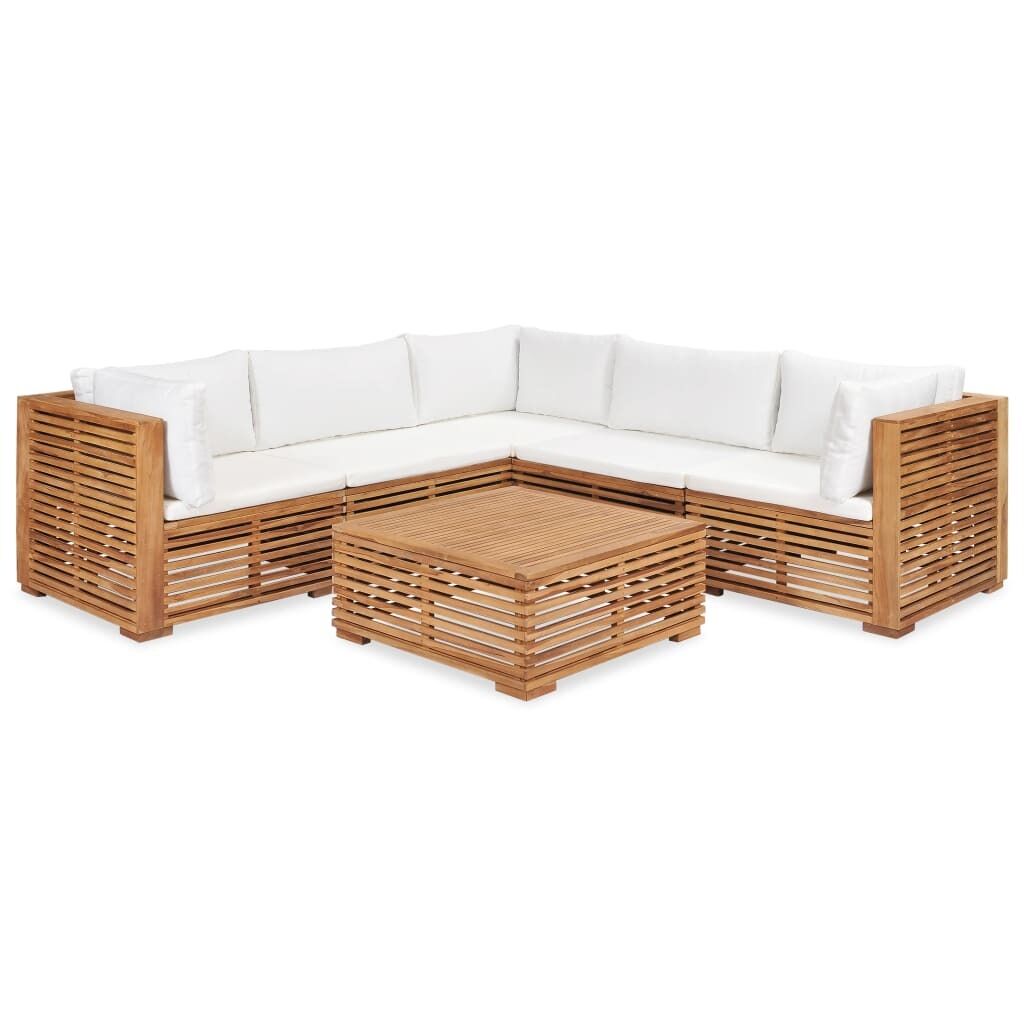 $796.17This solid wooden garden lounge set, standing out with the slatted design and soft cushions, is a perfect combination of style and functionality. With this in your garden, you can have a relaxing time with your family and friends. Constructed from extremely durable teak hard wood, this piece of teak furniture has been seasoned, kiln dried and then fine sanded to give a very smooth appearance. Teak wood is known for its exceptional strength and weather resistance, making it far more suitable for garden furniture than any other kind of wood. Teak wood is the perfect choice if you want to purchase a long lasting piece of garden furniture. The thickly padded seat and back cushions make it quite comfortable. The sanded surface is easy to clean with a damp cloth. It also lightweight, flexible and easy to move around. It makes it easy for you to create different layouts and fit your needs. This set is meant to be the focal point of your garden or patio. Note: We recommend covering the set during rain, snow and frost.