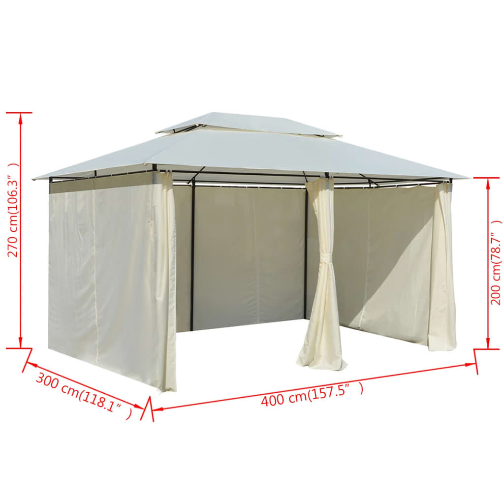 This water-resistant garden gazebo will be great for any outdoor events, such as small gatherings, weddings, BBQ parties, camping, and so on. You can also install it in your backyard as a large, lovely sunshade retreat for your family and guests. It features a stylish vented roof design that allows for improved airflow and added comfort. This strong and durable marquee has a high-quality powder-coated steel frame. The roof canopy and the elegant, adjustable drapes are made of high-quality polyester fabric with a polyamide coating, which makes UV, water resistant and thus very suitable for outdoor use! The fully closable curtains will allow you to enjoy a peaceful night in privacy and without being bothered by insects. Installation is easy; no special tools are required. NOTE: This product should NEVER be used under bad weather, such as strong wind, heavy rain, snow, storm, etc.