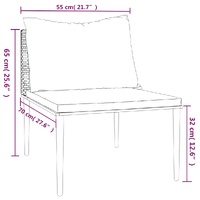 This trendy garden middle sofa, featuring an elegant and contemporary design, is suitable for dining or relaxing in your garden. Durable material: PE rattan, also known as poly rattan, is weather resistant and easy to clean. It remains beautiful on the outside for a long period of time. It offers great quality, convenience and an aesthetic look.Sturdy frame: The steel frame makes the garden sofa sturdy and stable for daily outdoor use.Comfortable seat experience: The backrest adds extra seating comfort for the outdoor sofa. Also, the thickly padded cushions provide comfort for your sitting time.Modular design: The garden seating is flexible and easy to move around, so you can combine it with other modular segments in the webshop to create your own personal garden lounge set configurations! Note:To make sure your outdoor furniture stays beautiful, we recommend protecting it with a waterproof cover.