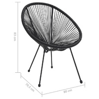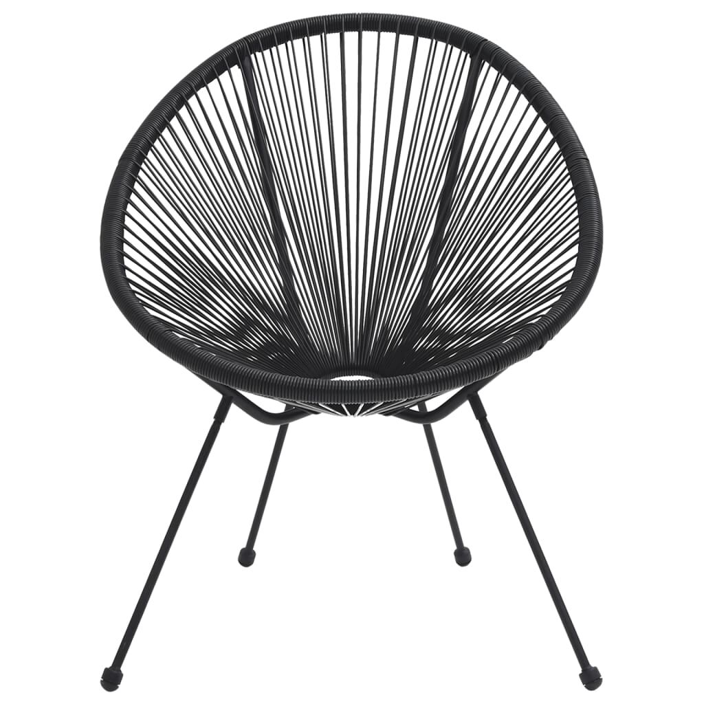 These garden moon chairs, combined with style and functionality, add a touch of fun and comfort to your garden or patio! It is made of round PVC rattan that is water resistant and easy to clean. Thanks to the powder-coated steel frame, the lounge chair is exceedingly stable. When you sit on this chair, it offers comfortable sitting posture so you can relax in your leisure time. Note: In order to extend the life of your outdoor furniture, we recommend you to clean it regularly and do not leave it outdoors without protection unnecessarily.Clean: Use a mild soap solution.Storing: If possible, store in a cool, dry place indoors. If the product is stored outdoors, protect it with a waterproof cover. Wipe and dry the excess water or snow from flat surfaces after a rain or snowfall. Allow sufficient air circulation to avoid moisture-related damage.