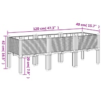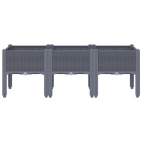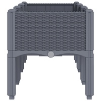 This garden planter is an excellent choice for climbing plants in your garden, patio and terrace. Durable material: Polypropylene is a popular plastic that is also one of the most used materials in outdoor furniture. It's lightweight, tough, and resistant to impact.Generous capacity: The outdoor planter provides plenty of space for growing all your vegetables, flowers and other plants.Bottom design: The ideal bottom layer helps retain moisture and allows for easy drainage.Beautiful rattan look: The patio planter is designed with a rattan look, bringing an elegant charm to your living space.Elevated design: The elevated design of this planter box can protect your plants from weeds and pests.