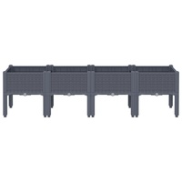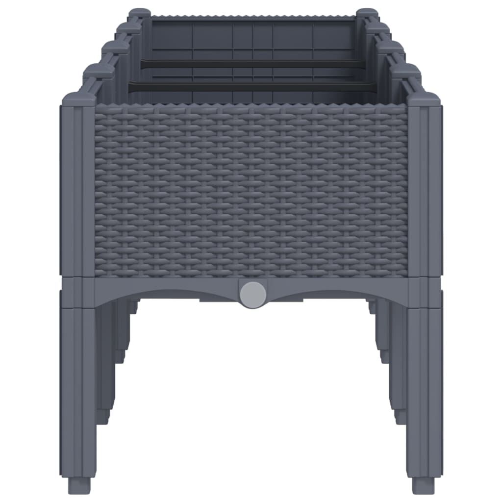 This garden planter is an excellent choice for climbing plants in your garden, patio and terrace. Durable material: Polypropylene is a popular plastic that is also one of the most used materials in outdoor furniture. It's lightweight, tough, and resistant to impact.Generous capacity: The outdoor planter provides plenty of space for growing all your vegetables, flowers and other plants.Bottom design: The ideal bottom layer helps retain moisture and allows for easy drainage.Beautiful rattan look: The patio planter is designed with a rattan look, bringing an elegant charm to your living space.Elevated design: The elevated design of this planter box can protect your plants from weeds and pests.