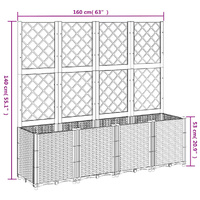 This garden planter with trellis is an excellent choice for climbing plants in your garden, patio and terrace. Durable material: Polypropylene is a popular plastic that is also one of the most used materials in outdoor furniture. It's lightweight, tough, and resistant to impact.Generous capacity: The outdoor planter provides plenty of space for growing all your vegetables, flowers and other plants.Practical design: The ideal bottom layer helps retain moisture and allows for easy drainage. Additionally, the integrated trellis offers great support for growing climbing plants such as tomatoes, peas, and roses.Modular design: This planter consists of 4 flower boxes that can be freely combined according to your needs.Beautiful rattan look: The patio planter is designed with a rattan look, bringing an elegant charm to your living space.