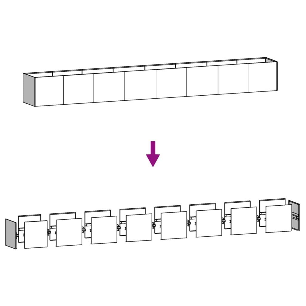 This garden rasied bed would be great for DIY enthusiasts to decorate your gardens, balconies, or patios. Durable material: Corten steel, also known as weathering steel. This is anti-corrosive by its very nature. It develops a rusty protective layer against corrosion when first exposed to atmospheric conditions. Thus, you don't need to paint it. This can help you save on maintenance and repair costs. The distinctive brown colour on the corten steel will surely be an eye-catcher. Finally, weathering steel is exceptionally durable and will stand up to the test of time. Ample space: The planter is deep and wide enough to hold a large amount of soil and provide ample space for your plants, vegetables, herbs, and flowers.Extra support: The interior support brackets of the raised bed ensure sturdiness and stability.Decorative function: The garden pot can hold your favourite plants or flowers, which is ideal for your garden as decoration.Open bottom design: This planter box has an open bottom design that allows excess water to drain away easily, while also allowing plant roots to extend freely and absorb more nutrients from the soil. Good to know:This product is not rusted yet and has a normal metal colour when you receive it, but rust will develop over time. You could speed up the rusting process by spraying it with soap water and salt water. To keep your clothes stain-free, avoid contact with the developing rust layer.This raised bed does not include a bottom.