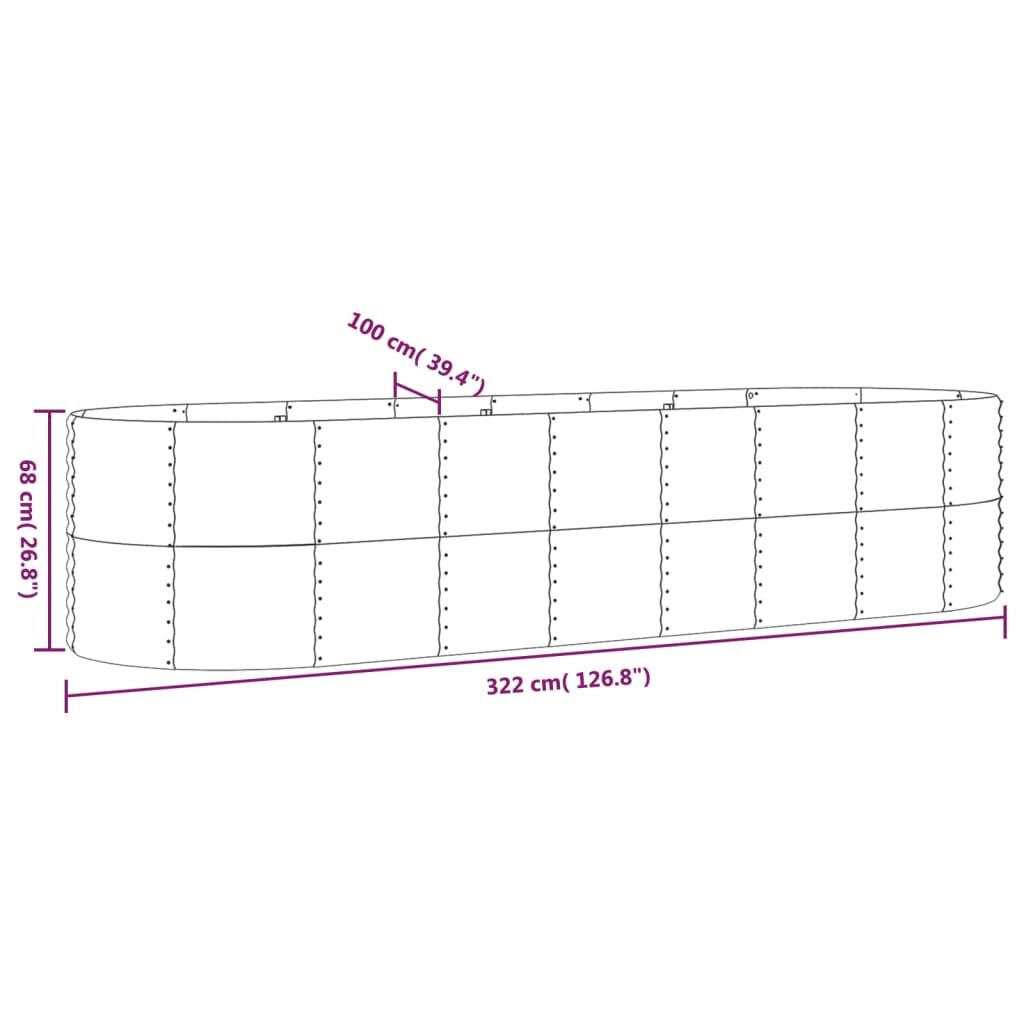 This garden raised bed would be a great choice for DIY enthusiasts to decorate their gardens, balconies, or patios. Sturdy frame: Made of powder-coated steel and equipped with interior support brackets, this planter pot is exceedingly sturdy and durable.Premium material: The flower bed is powder-coated against rust and corrosion. Therefore it is weather-resistant and very practical for outdoor use.Ample space: The garden raised bed is deep and wide enough to hold a large amount of soil and provide ample space for your plants, vegetables, herbs, and flowers.