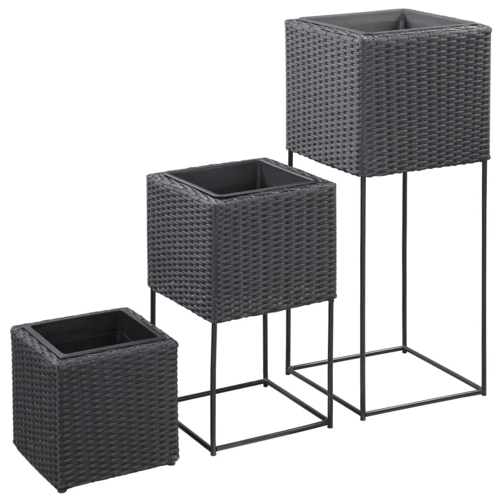 $130.65This lovely garden raised bed set consists of 3 poly rattan planter and 3 plastic pots. This planter is made of durable weather-resistant poly rattan, making it a perfect addition to your outdoor space. Its tight weaving structure produces a smooth finish, and the powder-coated steel legs ensure great stability. These planters in different sizes and height appear great next to each other and create a nice contrast with the green foliage. You can place all kinds of lively green plants and flowers in the pots. Additionally, the inside pots are removable. Get ready to have some fresh air from your garden, terrace and balcony with our beautiful planters!