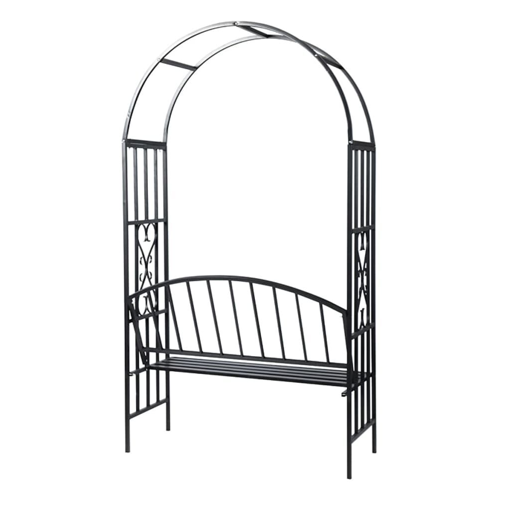 This garden rose arch with a bench is a real eye-catcher in any garden, patio, terrace etc. Beautiful designs are detailed throughout the arch. The arch has a high-quality and stable construction. It is made of stainless metal which is weather resistant. This rose arch can easily be installed. The maximum weight it can carry is 130 kg. Please note that ground spikes are not included in delivery.