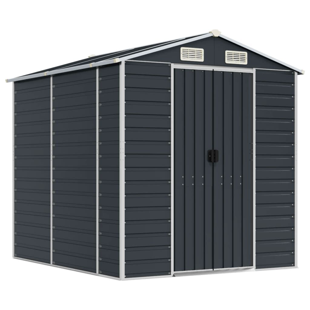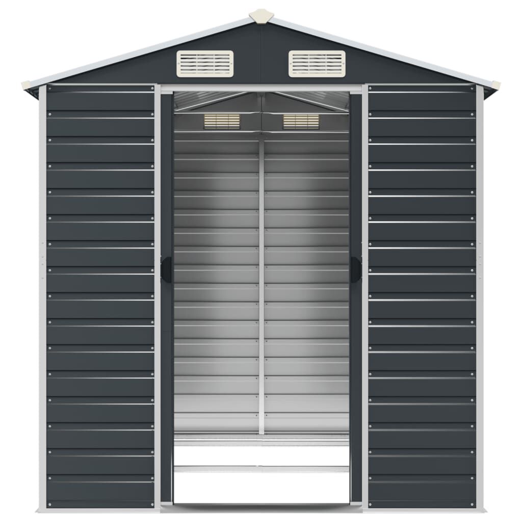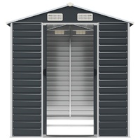 Expand your outdoor storage possibilities and protect your tools with this multifunctional garden shed. Robust material: The garden tool shed is made of galvanised steel, which prevents rusting and endures long-time use. Steel is an exceptionally hard and strong material. It offers sturdiness and stability. Galvanisation provides better protection against corrosion and is useful for products that'll be used outdoors as well as in harsh environments.Ample storage space: This metal shed provides ample space to store your firewood, garden tools, furniture, equipment, and more.Convenient handles: The storage shed features handles on the door for easy entry.Good ventilation: The outdoor shed is equipped with 4 air vents, providing ventilation to reduce the accumulation of moisture and odour in the house.Sloping design: The sloping roof ensures unimpeded drainage of water.