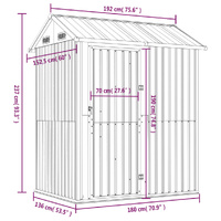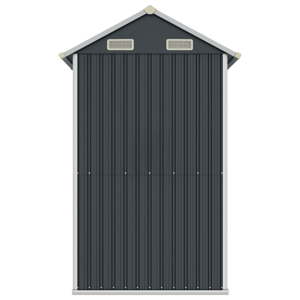 Expand your outdoor storage possibilities and protect your tools with this multifunctional garden shed. Robust material: The garden tool shed is made of galvanised steel, which prevents rusting and endures long-time use. Steel is an exceptionally hard and strong material. It offers sturdiness and stability. Galvanisation provides better protection against corrosion and is useful for products that'll be used outdoors as well as in harsh environments.Ample storage space: This metal shed provides ample space to store your firewood, garden tools, furniture, equipment, and more.Convenient door: The door allows quick and easy access to your tools and protects your stored items from small animals or wind.Good ventilation: The outdoor shed is equipped with 4 air vents, providing ventilation to reduce the accumulation of moisture and odour in the house.Sloping design: The sloping roof ensures unimpeded drainage of water.Good to know:To prevent damage from heavy snow buildup, we recommend clearing the roof regularly during winter.