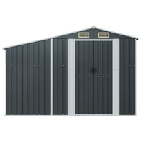 Expand your outdoor storage possibilities and protect your tools with this multifunctional garden shed. Robust material: Steel is an exceptionally hard and strong material. It offers sturdiness and stability. Galvanisation provides better protection against corrosion and is useful for products that will be used outdoors as well as in harsh environments. Made of galvanised steel, the garden storage is durable enough for outdoor use.Ample storage space: This metal shed, consisting of a firewood stand and a large shed, provides ample space for organising your garden tools.Convenient handles: The shed house features handles, which make it more convenient to get in and out.Good ventilation: The storage shed is equipped with 2 air vents, providing ventilation to reduce the accumulation of moisture and odour in the house.Sloping design: The rainwater automatically drains from the sloping roof.