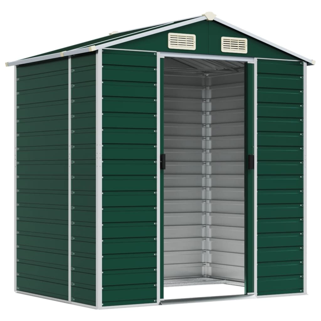 Expand your outdoor storage possibilities and protect your tools with this multifunctional garden shed. Robust material: The garden tool shed is made of galvanised steel, which prevents rusting and endures long-time use. Steel is an exceptionally hard and strong material. It offers sturdiness and stability. Galvanisation provides better protection against corrosion and is useful for products that'll be used outdoors as well as in harsh environments.Ample storage space: This metal shed provides ample space to store your firewood, garden tools, furniture, equipment, and more.Convenient handles: The storage shed features handles on the door for easy entry.Good ventilation: The outdoor shed is equipped with 4 air vents, providing ventilation to reduce the accumulation of moisture and odour in the house.Sloping design: The sloping roof ensures unimpeded drainage of water.