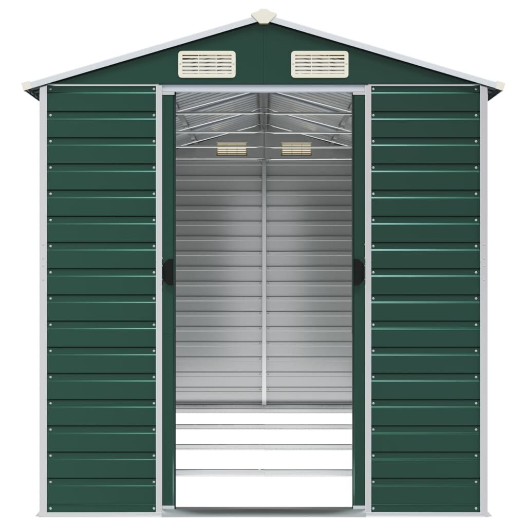 Expand your outdoor storage possibilities and protect your tools with this multifunctional garden shed. Robust material: The garden tool shed is made of galvanised steel, which prevents rusting and endures long-time use. Steel is an exceptionally hard and strong material. It offers sturdiness and stability. Galvanisation provides better protection against corrosion and is useful for products that'll be used outdoors as well as in harsh environments.Ample storage space: This metal shed provides ample space to store your firewood, garden tools, furniture, equipment, and more.Convenient handles: The storage shed features handles on the door for easy entry.Good ventilation: The outdoor shed is equipped with 4 air vents, providing ventilation to reduce the accumulation of moisture and odour in the house.Sloping design: The sloping roof ensures unimpeded drainage of water.