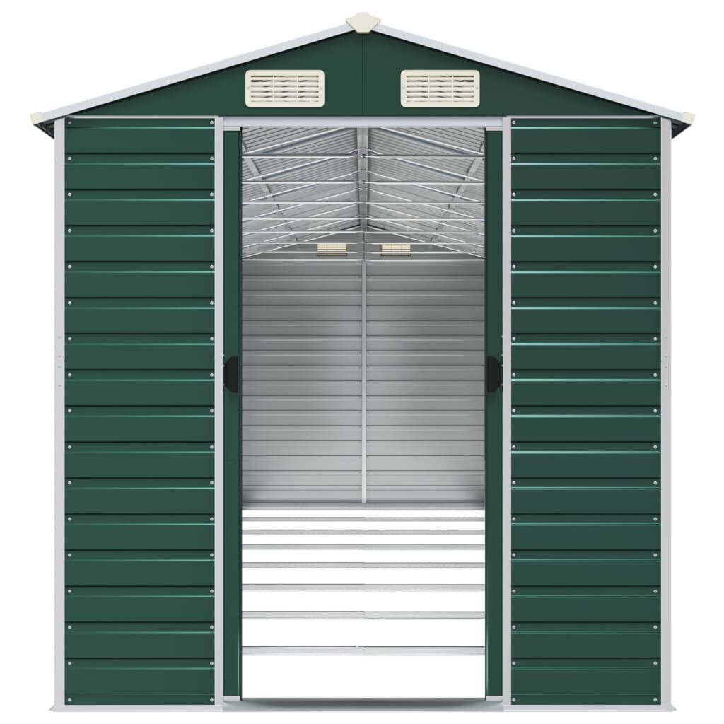 Expand your outdoor storage possibilities and protect your tools with this multifunctional garden shed. Robust material: The garden tool shed is made of galvanised steel, which prevents rusting and endures long-time use. Steel is an exceptionally hard and strong material. It offers sturdiness and stability. Galvanisation provides better protection against corrosion and is useful for products that'll be used outdoors as well as in harsh environments.Ample storage space: This metal shed provides ample space to store your firewood, garden tools, furniture, equipment, and more.Convenient handles: The storage shed features handles on the door for easy entry.Good ventilation: The outdoor shed is equipped with 4 air vents, providing ventilation to reduce the accumulation of moisture and odour in the house.Sloping design: The sloping roof ensures unimpeded drainage of water.