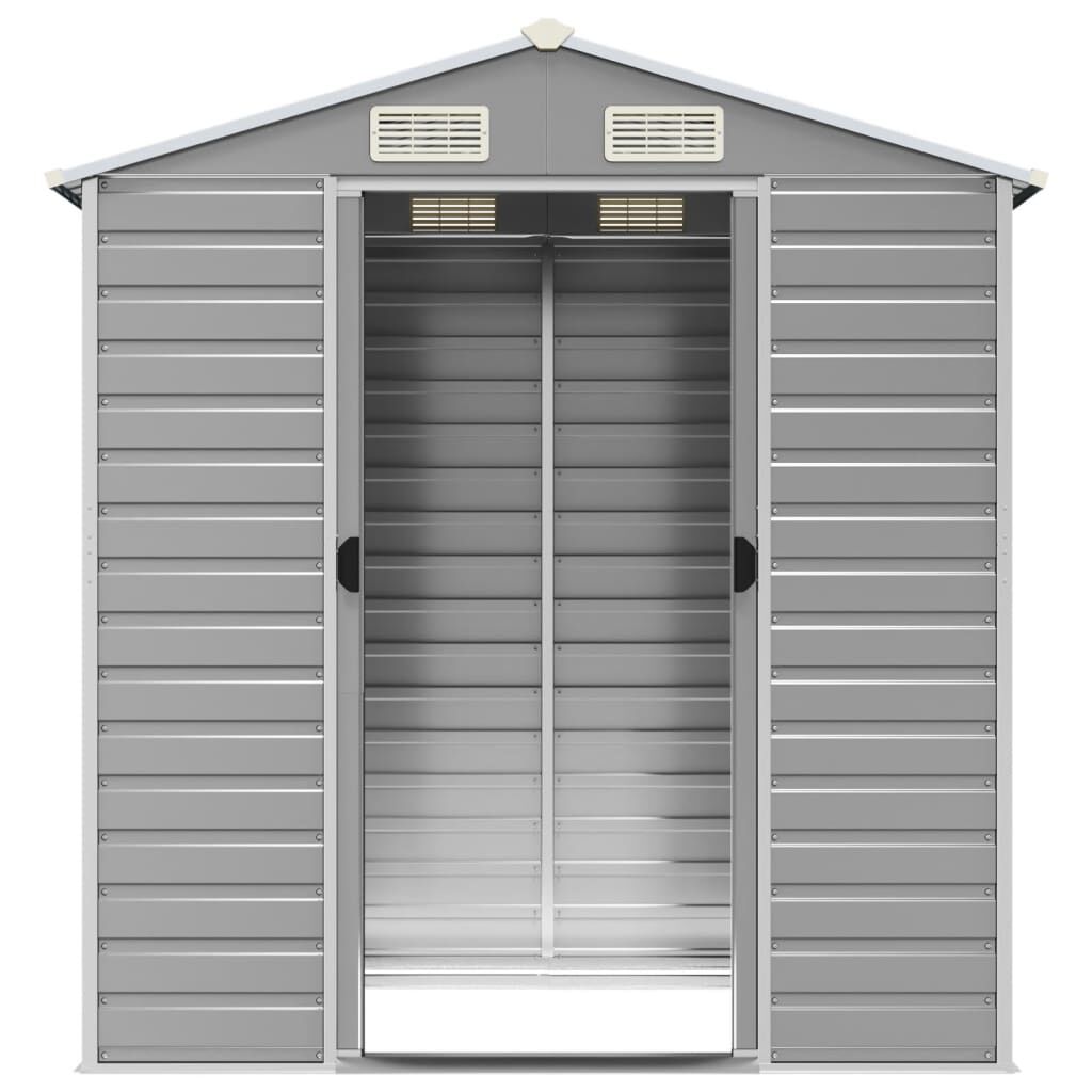 Expand your outdoor storage possibilities and protect your tools with this multifunctional garden shed. Robust material: The garden tool shed is made of galvanised steel, which prevents rusting and endures long-time use. Steel is an exceptionally hard and strong material. It offers sturdiness and stability. Galvanisation provides better protection against corrosion and is useful for products that'll be used outdoors as well as in harsh environments.Ample storage space: This metal shed provides ample space to store your firewood, garden tools, furniture, equipment, and more.Convenient handles: The storage shed features handles on the door for easy entry.Good ventilation: The outdoor shed is equipped with 4 air vents, providing ventilation to reduce the accumulation of moisture and odour in the house.Sloping design: The sloping roof ensures unimpeded drainage of water.