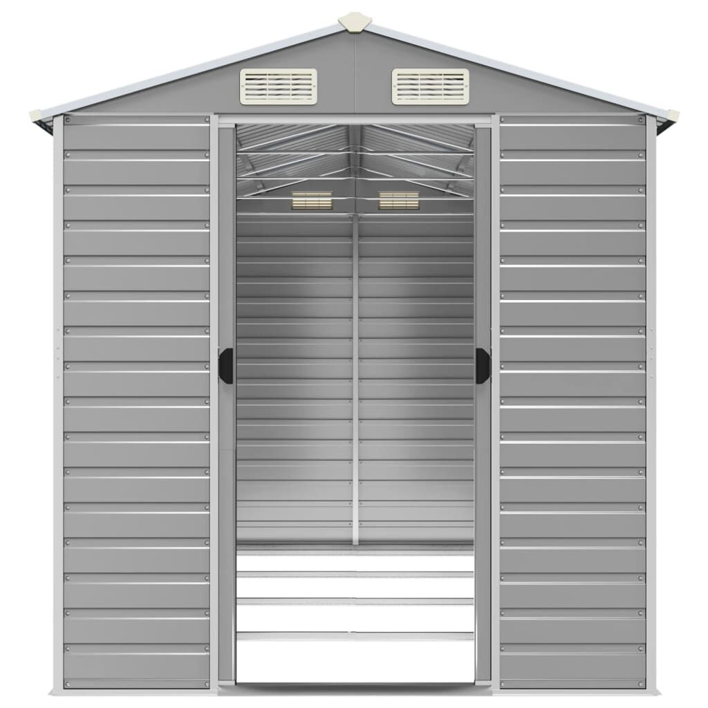Expand your outdoor storage possibilities and protect your tools with this multifunctional garden shed. Robust material: The garden tool shed is made of galvanised steel, which prevents rusting and endures long-time use. Steel is an exceptionally hard and strong material. It offers sturdiness and stability. Galvanisation provides better protection against corrosion and is useful for products that'll be used outdoors as well as in harsh environments.Ample storage space: This metal shed provides ample space to store your firewood, garden tools, furniture, equipment, and more.Convenient handles: The storage shed features handles on the door for easy entry.Good ventilation: The outdoor shed is equipped with 4 air vents, providing ventilation to reduce the accumulation of moisture and odour in the house.Sloping design: The sloping roof ensures unimpeded drainage of water.