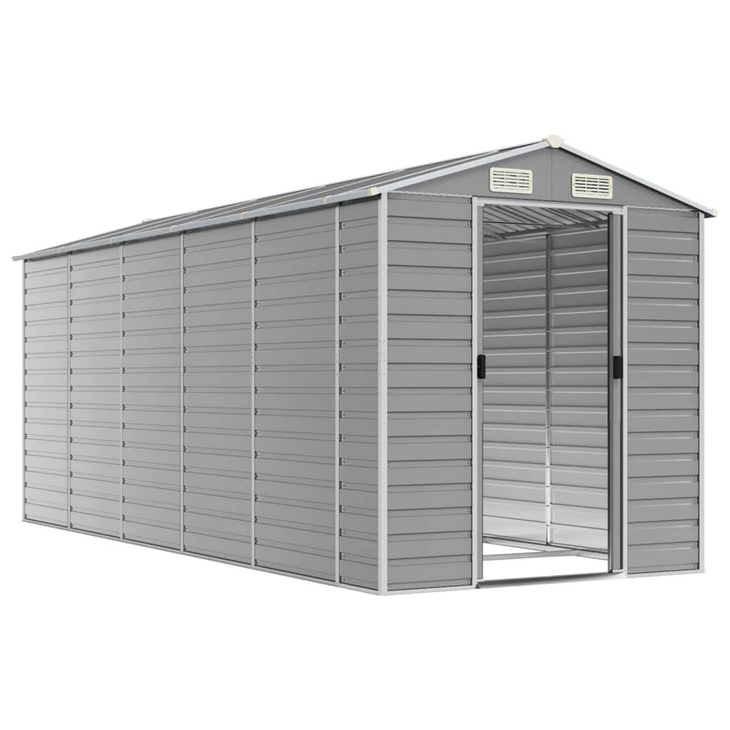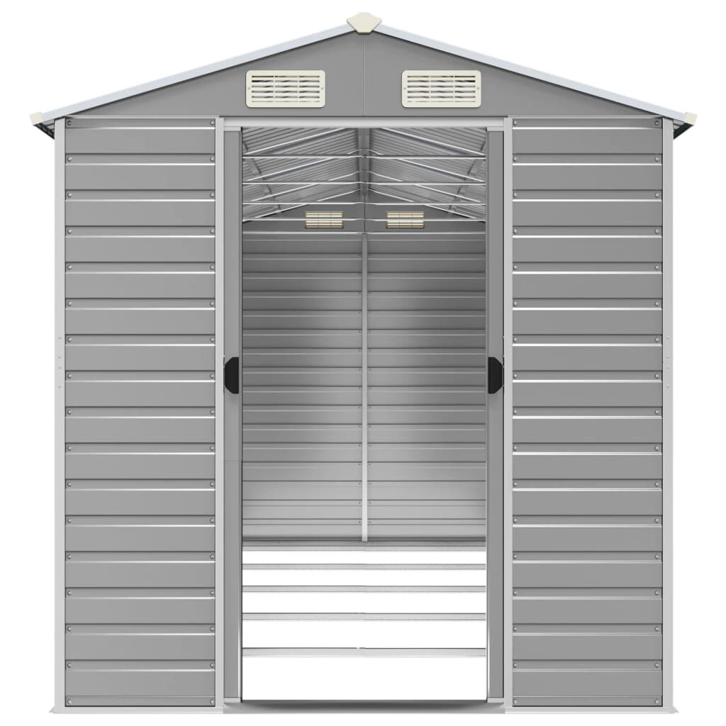 Expand your outdoor storage possibilities and protect your tools with this multifunctional garden shed. Robust material: The garden tool shed is made of galvanised steel, which prevents rusting and endures long-time use. Steel is an exceptionally hard and strong material. It offers sturdiness and stability. Galvanisation provides better protection against corrosion and is useful for products that'll be used outdoors as well as in harsh environments.Ample storage space: This metal shed provides ample space to store your firewood, garden tools, furniture, equipment, and more.Convenient handles: The storage shed features handles on the door for easy entry.Good ventilation: The outdoor shed is equipped with 4 air vents, providing ventilation to reduce the accumulation of moisture and odour in the house.Sloping design: The sloping roof ensures unimpeded drainage of water.
