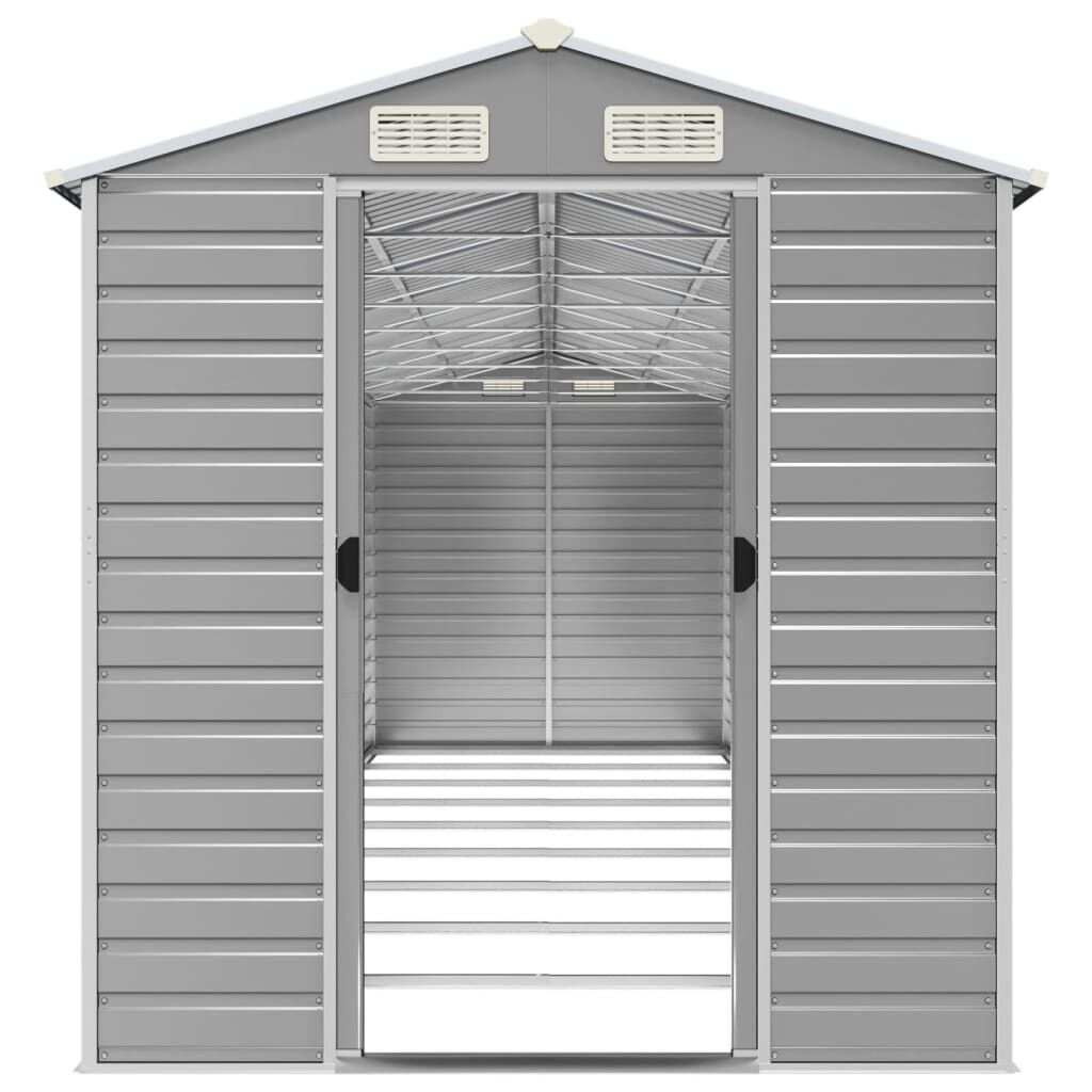 Expand your outdoor storage possibilities and protect your tools with this multifunctional garden shed. Robust material: The garden tool shed is made of galvanised steel, which prevents rusting and endures long-time use. Steel is an exceptionally hard and strong material. It offers sturdiness and stability. Galvanisation provides better protection against corrosion and is useful for products that'll be used outdoors as well as in harsh environments.Ample storage space: This metal shed provides ample space to store your firewood, garden tools, furniture, equipment, and more.Convenient handles: The storage shed features handles on the door for easy entry.Good ventilation: The outdoor shed is equipped with 4 air vents, providing ventilation to reduce the accumulation of moisture and odour in the house.Sloping design: The sloping roof ensures unimpeded drainage of water.