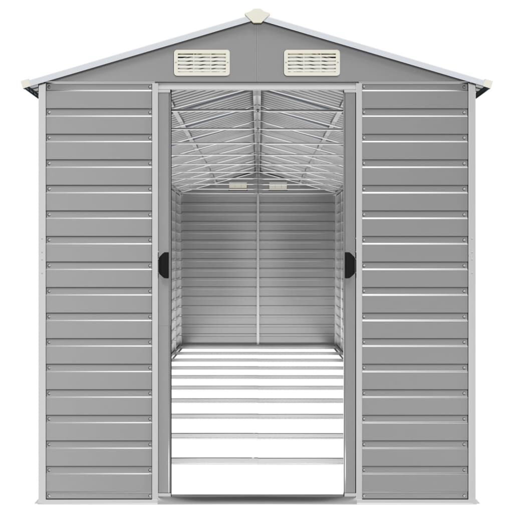Expand your outdoor storage possibilities and protect your tools with this multifunctional garden shed. Robust material: The garden tool shed is made of galvanised steel, which prevents rusting and endures long-time use. Steel is an exceptionally hard and strong material. It offers sturdiness and stability. Galvanisation provides better protection against corrosion and is useful for products that'll be used outdoors as well as in harsh environments.Ample storage space: This metal shed provides ample space to store your firewood, garden tools, furniture, equipment, and more.Convenient handles: The storage shed features handles on the door for easy entry.Good ventilation: The outdoor shed is equipped with 4 air vents, providing ventilation to reduce the accumulation of moisture and odour in the house.Sloping design: The sloping roof ensures unimpeded drainage of water.