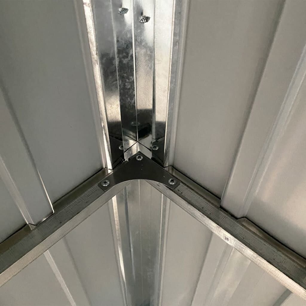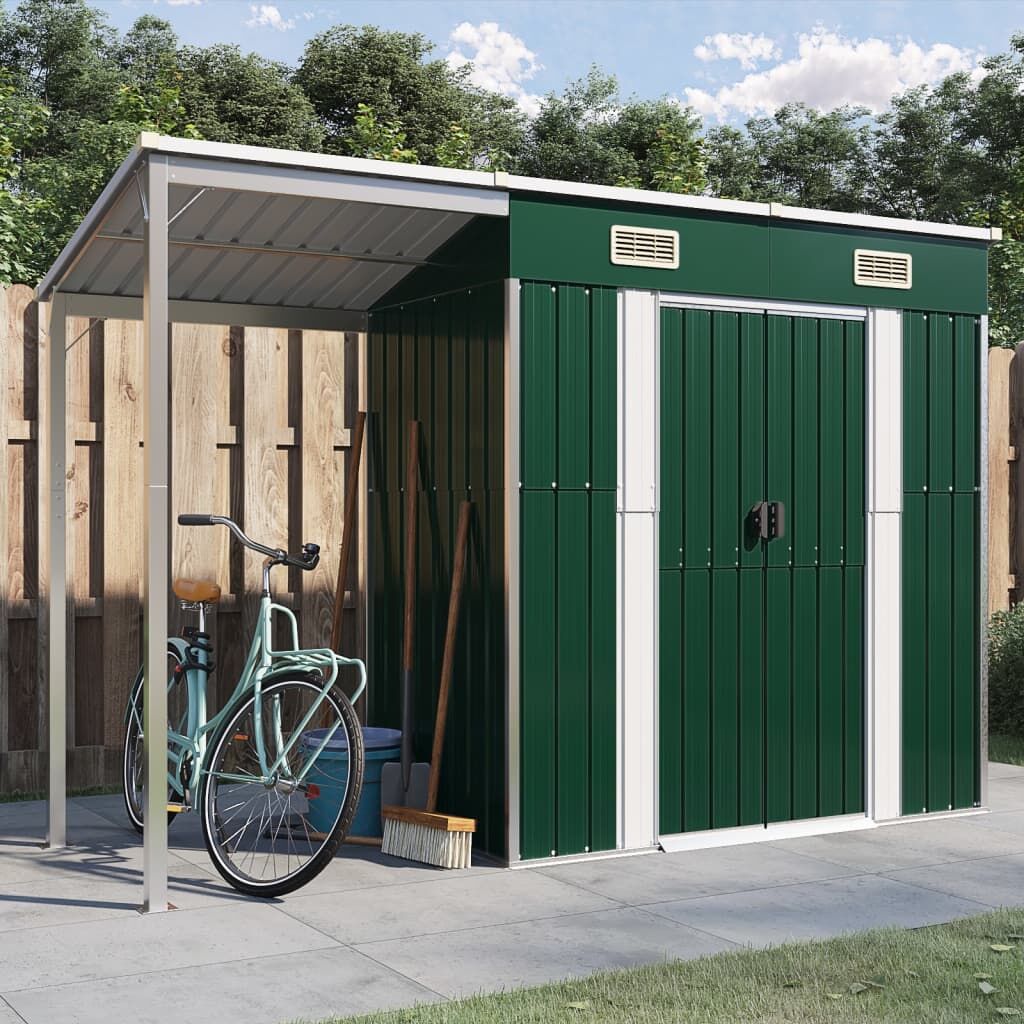 This sturdy garden shed, standing out with an extended roof, is perfect for storing a wide variety of items like tools, garden furniture, garden equipment, and more. Robust material: The garden tool shed is made of galvanised steel, which prevents rusting and endures long-time use. Steel is an exceptionally hard and strong material. It offers sturdiness and stability. Galvanisation provides better protection against corrosion and is useful for products that'll be used outdoors as well as in harsh environments.Ample storage space: This metal shed offers plenty of room to store your firewood, garden tools, furniture, equipment, and more. It also has an extended roof for storing firewood. The roof can be fixed on either side of the shed.Convenient handles: The storage shed features handles on the door for easy entry.Good ventilation: The outdoor shed is equipped with 2 air vents, providing ventilation to reduce the accumulation of moisture and odour in the house.Sloping design: The sloping roof ensures unimpeded drainage of water.