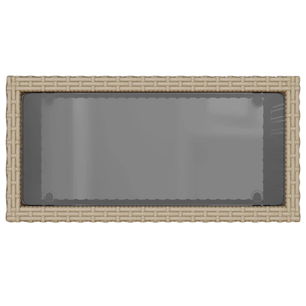 Gather around this versatile garden side table to enjoy a coffee or have a chat with your family and friends in the garden, backyard, or on the patio! Durable material: PE rattan, also known as poly rattan, is a strong, low-maintenance synthetic material that looks like natural rattan. It's lightweight, easy to clean, and commonly used for outdoor furniture due to its durability and weather-resistant properties.Glass tabletop: The outdoor table's top is made from strong and durable tempered glass, making it easy to clean with a damp cloth and adding a touch of elegance to your outdoor space.Robust and stable frame: The powder-coated steel frame ensures the garden furniture is strong and stable for daily outdoor use. Good to know:To make sure your outdoor furniture stays beautiful, we recommend protecting it with a waterproof cover.