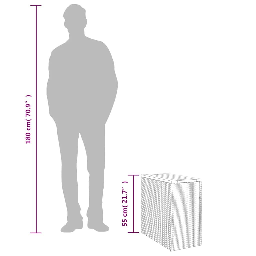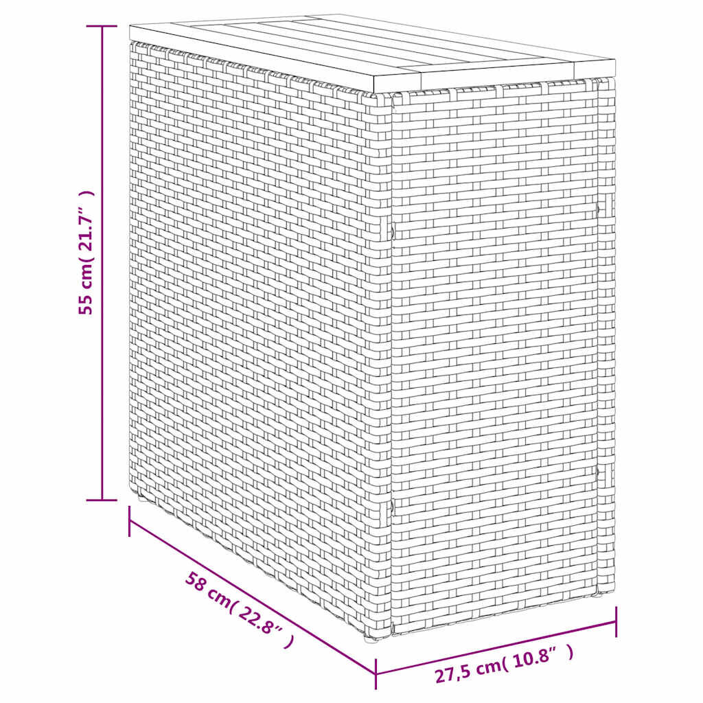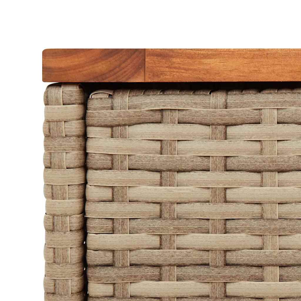 Gather around this versatile garden side table to enjoy a coffee or have a chat with your family and friends in the garden, backyard, or on the patio! Durable material: PE rattan, also known as poly rattan, is a strong, low-maintenance synthetic material that looks like natural rattan. It's lightweight, easy to clean, and commonly used for outdoor furniture due to its durability and weather-resistant properties.Wooden tabletop: The outdoor table's top is made from sturdy and durable acacia wood, making it easy to clean with a damp cloth and adding a touch of elegance to your outdoor space.Robust and stable frame: The powder-coated steel frame ensures the garden furniture is strong and stable for daily outdoor use. Good to know:To make sure your outdoor furniture stays beautiful, we recommend protecting it with a waterproof cover.
