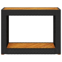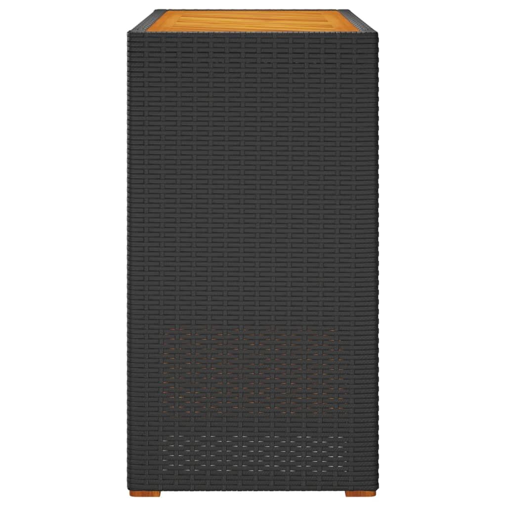 Garden Side Table with Wooden Top Black 100x40x75 cm Poly Rattan