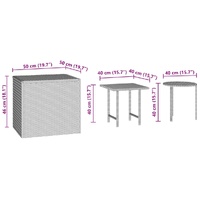 The garden side tables are the perfect addition to your backyard, terrace, or patio, providing a comfortable and inviting space for chatting with family and friends or simply relaxing and enjoying the outdoors. Durable material: PE rattan, also known as poly rattan, is a strong, low-maintenance synthetic material that looks like natural rattan. It's lightweight, easy to clean, and commonly used for outdoor furniture due to its durability and weather-resistant properties.Robust and stable frame: The powder-coated steel frame is strong, stable, durable, and resistant to corrosion and harsh weather, ensuring long-lasting performance.Versatile use: This outdoor table set is a great match for your garden sofa, conversation, and lounge sets. It's perfect for holding drinks, snacks, books, or decorative items, adding style and convenience to your outdoor space.Easy maintenance: The outdoor table set is designed for effortless upkeep and can be quickly cleaned with a damp cloth, making maintenance both simple and convenient. Good to knowTo make sure your outdoor furniture stays beautiful, we recommend protecting it with a waterproof cover.