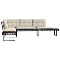 This L-shaped garden sofa is the perfect addition to your garden, terrace, or patio, providing a comfortable and inviting space for chatting with family and friends or simply relaxing and enjoying the outdoors. Durable material: PE rattan, also known as poly rattan, is a strong, low-maintenance synthetic material that looks like natural rattan. It's lightweight, easy to clean, and commonly used for outdoor furniture due to its durability and weather-resistant properties.Comfortable seat experience: This outdoor furniture, complete with thickly padded cushions, offers a comfortable seating experience.Removable and washable cover: These seat cushions feature removable covers for easy washing and maintenance.Convenient side table: This outdoor furniture features 2 side tables, providing a convenient spot to keep your essentials within easy reach.Robust and stable frame: The powder-coated steel frame ensures that the garden furniture is strong and stable for daily outdoor use. Good to know:To make sure your outdoor furniture stays beautiful, we recommend protecting it with a waterproof cover.