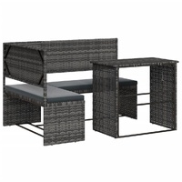 Garden Sofa with Table and Cushions L-Shaped Grey Poly Rattan