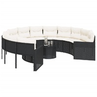This round-shaped garden sofa is the perfect addition to your garden, terrace, or patio, providing a comfortable and inviting space for chatting with family and friends or simply relaxing and enjoying the outdoors. Durable material: PE rattan, also known as poly rattan, is a strong, low-maintenance synthetic material that looks like natural rattan. It's lightweight, easy to clean, and commonly used for outdoor furniture due to its durability and weather-resistant properties.Comfortable seat experience: This outdoor furniture, complete with thickly padded cushions, offers a comfortable seating experience.Removable and washable cover: These seat cushions feature removable covers for easy washing and maintenance.Glass tabletop: The outdoor table's top is made from strong and durable tempered glass, making it easy to clean with a damp cloth and adding a touch of elegance to your outdoor space.Robust and stable frame: The powder-coated steel frame ensures that the garden furniture is strong and stable for daily outdoor use. Good to know:To make sure your outdoor furniture stays beautiful, we recommend protecting it with a waterproof cover.
