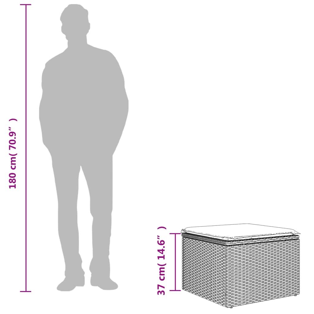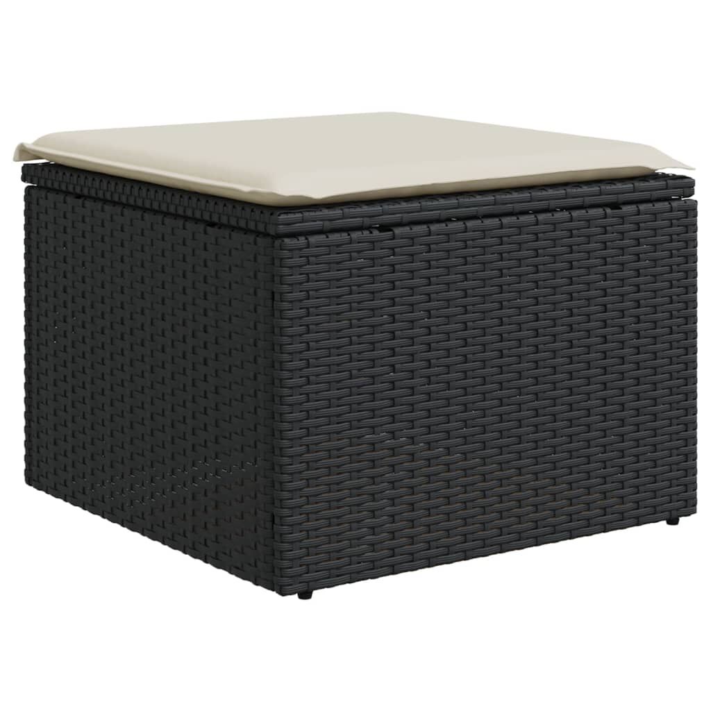 Relax and enjoy the outdoors on this comfortable garden stool! Durable material: PE rattan, also known as poly rattan, is a strong, low-maintenance synthetic material that looks like natural rattan. It's lightweight, easy to clean, and commonly used for outdoor furniture due to its durability and weather-resistant properties.Storage function with water-resistant bag: Each garden seat features a storage space under the seat, complete with a water-resistant bag for storing cushions, toys, and other items. The inner bag has a top cover and can be securely fastened to the seat with the hook-and-loop fasteners for added stability.Comfortable seat experience: This outdoor furniture, complete with a thickly padded cushion, offers a comfortable seating experience.Removable and washable cover: The seat cushion features a removable cover for easy washing and maintenance.Robust and stable frame: The powder-coated steel frame ensures the garden furniture is strong and stable for daily outdoor use. Good to know:To make sure your outdoor furniture stays beautiful, we recommend protecting it with a waterproof cover.