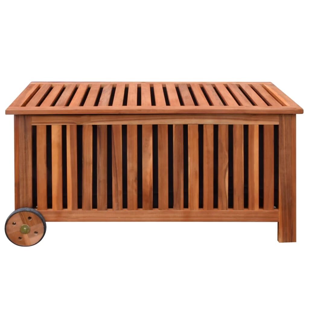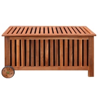 This wooden cushion box will be an ideal storage solution for cushions, pillows, extra blankets, or other knick-knacks in your garden, or on the patio or terrace. Thanks to its high-quality, oil-finished wood, the cushion box is easy to clean, hard-wearing and suitable for daily use. The water-resistant oil finish and an inner water resistant bag protect your items from moisture. It is designed with 2 wheels and a handle on the one side for easy transport and carrying. This handy and versatile storage box will make a great addition any indoor or outdoor living space!