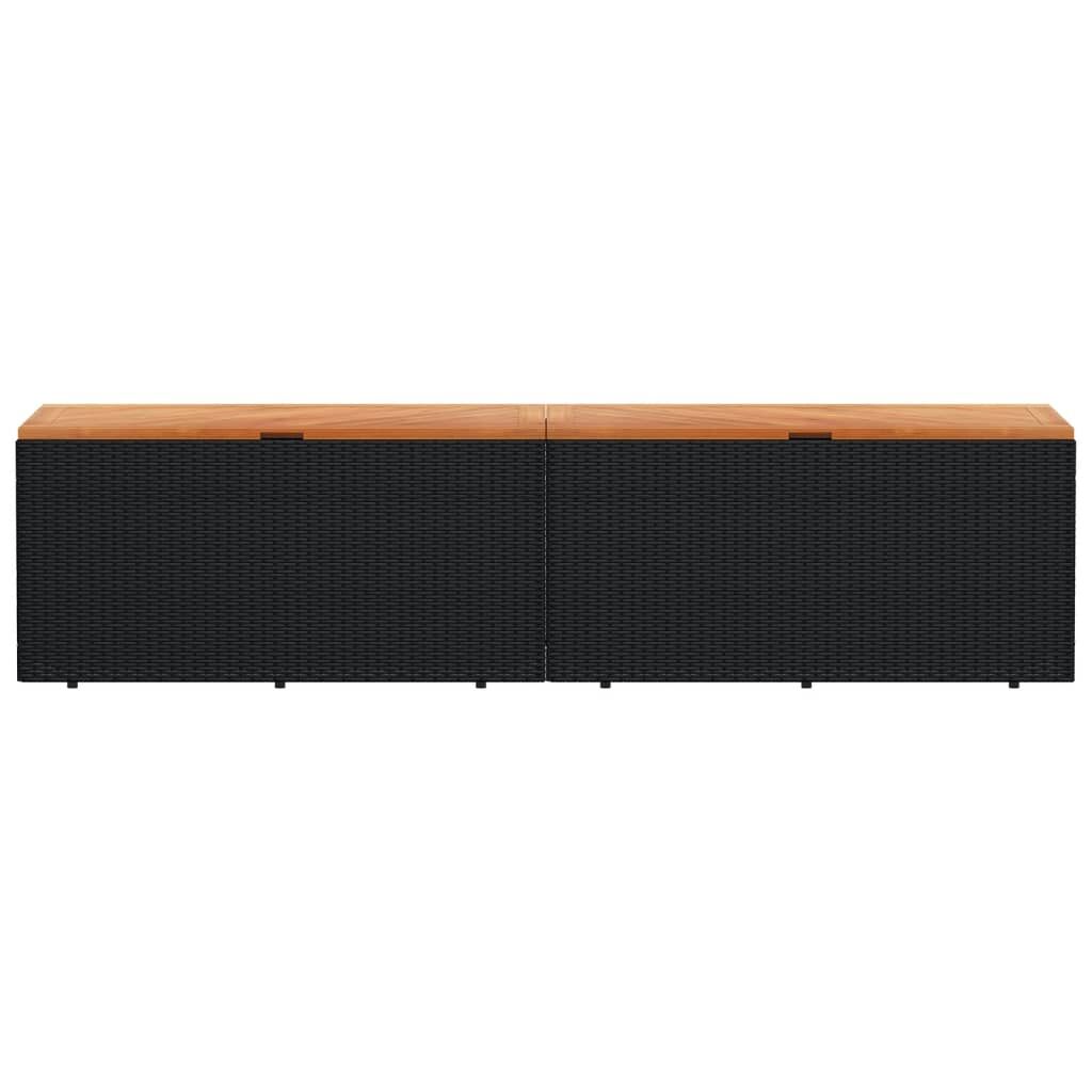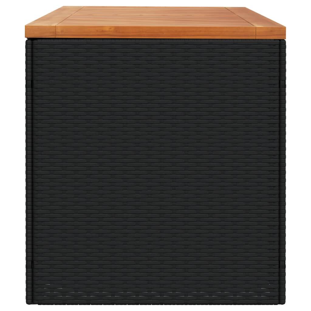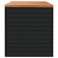 This garden storage box is ideal for storing your cushions, pillows, blankets, toys, and other items in the garden or on the patio. Durable material: PE rattan, also known as poly rattan, is a strong, low-maintenance synthetic material that looks like natural rattan. It's lightweight, easy to clean, and commonly used for outdoor furniture due to its durability and weather-resistant properties.Storage function with water-resistant bag: The garden furniture features storage space under the seat, complete with a water-resistant bag for storing cushions, toys, and other items. The inner bag can be securely fastened to the outdoor furniture with hook-and-loop fasteners for added stability.Versatile functionality: This outdoor furniture serves a dual purpose as a garden storage box and a bench seat.Safe and easy to open and close: The gas spring makes it easy to open the lid and keeps it from slamming shut or trapping fingers.Stable and easy-to-clean tabletop: This patio furniture has an acacia wood top that is sturdy, durable, and easy to clean with a damp cloth. Good to know:To make sure your outdoor furniture stays beautiful, we recommend protecting it with a waterproof cover.
