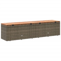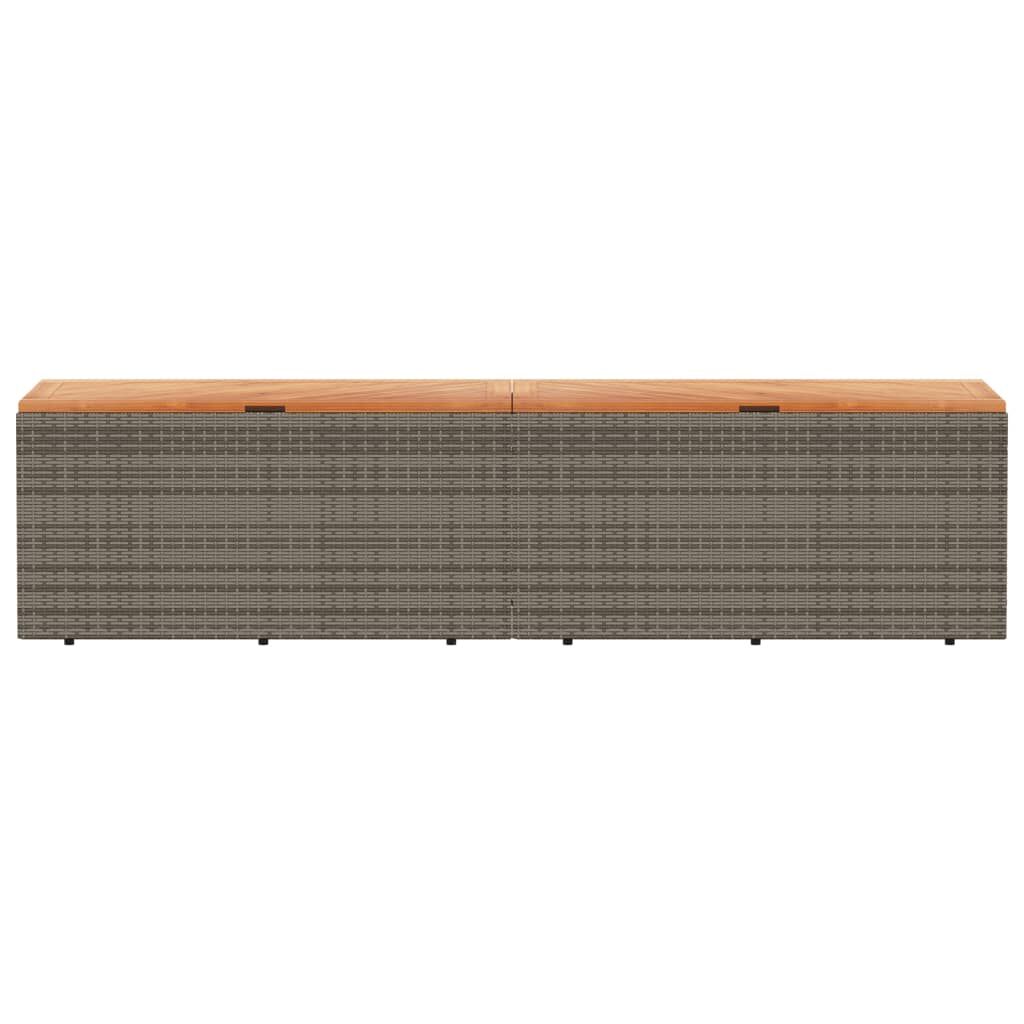 This garden storage box is ideal for storing your cushions, pillows, blankets, toys, and other items in the garden or on the patio. Durable material: PE rattan, also known as poly rattan, is a strong, low-maintenance synthetic material that looks like natural rattan. It's lightweight, easy to clean, and commonly used for outdoor furniture due to its durability and weather-resistant properties.Storage function with water-resistant bag: The garden furniture features storage space under the seat, complete with a water-resistant bag for storing cushions, toys, and other items. The inner bag can be securely fastened to the outdoor furniture with hook-and-loop fasteners for added stability.Versatile functionality: This outdoor furniture serves a dual purpose as a garden storage box and a bench seat.Safe and easy to open and close: The gas spring makes it easy to open the lid and keeps it from slamming shut or trapping fingers.Stable and easy-to-clean tabletop: This patio furniture has an acacia wood top that is sturdy, durable, and easy to clean with a damp cloth. Good to know:To make sure your outdoor furniture stays beautiful, we recommend protecting it with a waterproof cover.