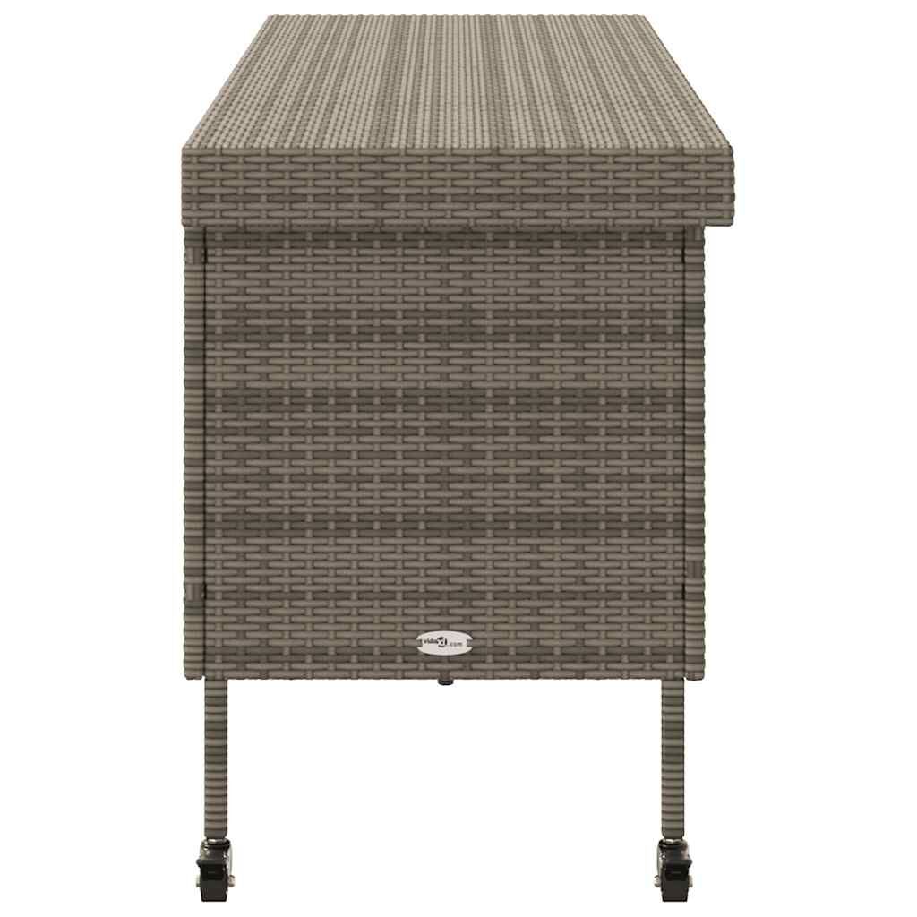 This garden storage box is perfect for keeping your outdoor furniture cushions, gardening supplies, pool towels, and other items organised and easily accessible. Durable material: PE rattan, also known as poly rattan, is a strong, low-maintenance synthetic material that looks like natural rattan. It's lightweight, easy to clean, and commonly used for outdoor furniture due to its durability and weather-resistant properties.Robust and stable frame: The powder-coated steel frame is strong, stable, durable, and resistant to corrosion and harsh weather, ensuring long-lasting performance.Easy to move: This outdoor storage box features two wheels with brakes, allowing for effortless relocation to any desired location while securely locking in place for improved control and safety. Additionally, the handle facilitates easy transportation.Safe and easy to open and close: The gas spring makes it easy to open the lid and keeps it from slamming shut or trapping fingers.Storage function: The garden furniture features storage space underneath, equipped with a water-resistant bag for storing cushions, toys, and other items. The inner bag can be securely attached to the seat with hook-and-loop fasteners, ensuring stability and preventing movement. Good to know:To make sure your outdoor furniture stays beautiful, we recommend protecting it with a waterproof cover.
