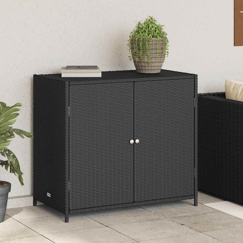 This garden storage cabinet is perfect for keeping your outdoor furniture cushions, gardening supplies, pool towels, and other items organised and easily accessible. Durable material: PE rattan, also known as poly rattan, is a strong, low-maintenance synthetic material that looks like natural rattan. It's lightweight, easy to clean, and commonly used for outdoor furniture due to its durability and weather-resistant properties.Ample storage space: This outdoor storage cabinet has a large space behind the two doors to store your garden tools, pool toys, outdoor cushions, and more.Robust and stable frame: The powder-coated steel frame ensures the garden furniture is strong and stable for daily outdoor use. Practical doors: Both 2 doors are equipped with stainless steel door knobs and magnets for easy opening and closing. WarningTo prevent it being overturned, this product must be used with the provided wall attachment device. Good to know:To make sure your outdoor furniture stays beautiful, we recommend protecting it with a waterproof cover.