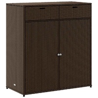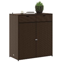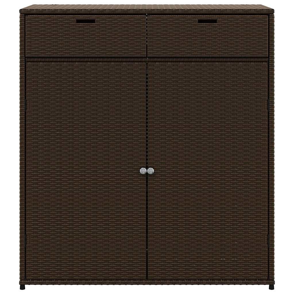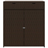 This garden storage cabinet is perfect for keeping your outdoor furniture cushions, gardening supplies, pool towels, and other items organised and easily accessible. Durable material: PE rattan, also known as poly rattan, is a strong, low-maintenance synthetic material that looks like natural rattan. It's lightweight, easy to clean, and commonly used for outdoor furniture due to its durability and weather-resistant properties.Ample storage space: This outdoor storage cabinet has a large space to store your garden tools, pool toys, outdoor cushions, and more.Robust and stable frame: The powder-coated steel frame ensures the garden furniture is strong and stable for daily outdoor use. Practical doors: Both 2 doors are equipped with stainless steel door knobs and magnets for easy opening and closing. WarningTo prevent it being overturned, this product must be used with the provided wall attachment device. Good to know:To make sure your outdoor furniture stays beautiful, we recommend protecting it with a waterproof cover.