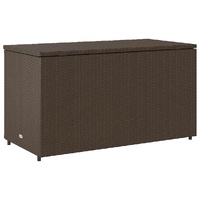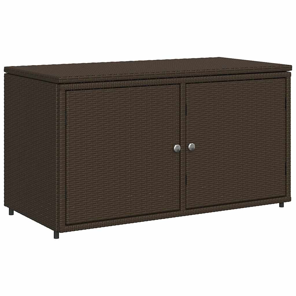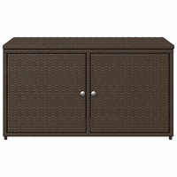 This garden storage cabinet is perfect for keeping your outdoor furniture cushions, gardening supplies, pool towels, and other items organised and easily accessible. Durable material: PE rattan, also known as poly rattan, is a strong, low-maintenance synthetic material that looks like natural rattan. It's lightweight, easy to clean, and commonly used for outdoor furniture due to its durability and weather-resistant properties.Ample storage space: This outdoor storage cabinet has a large space behind the two doors to store your garden tools, pool toys, outdoor cushions, and more.Robust and stable frame: The powder-coated steel frame ensures the garden furniture is strong and stable for daily outdoor use. Practical design: Both 2 doors are equipped with stainless steel door knobs and magnets for easy opening and closing. The top lid helps for easy storage and easy access to your items. WarningTo prevent it being overturned, this product must be used with the provided wall attachment device. Good to know:To make sure your outdoor furniture stays beautiful, we recommend protecting it with a waterproof cover.