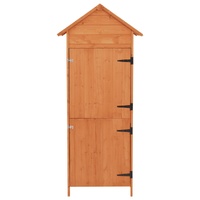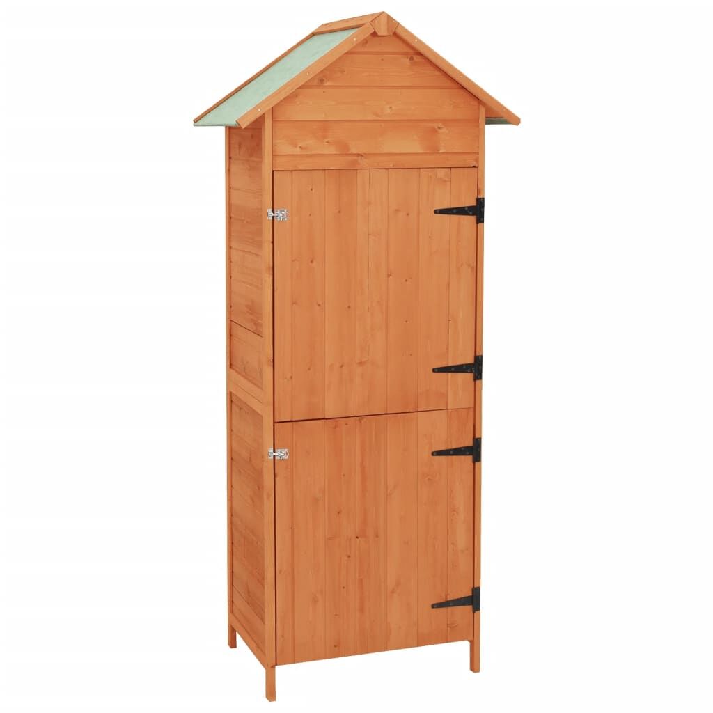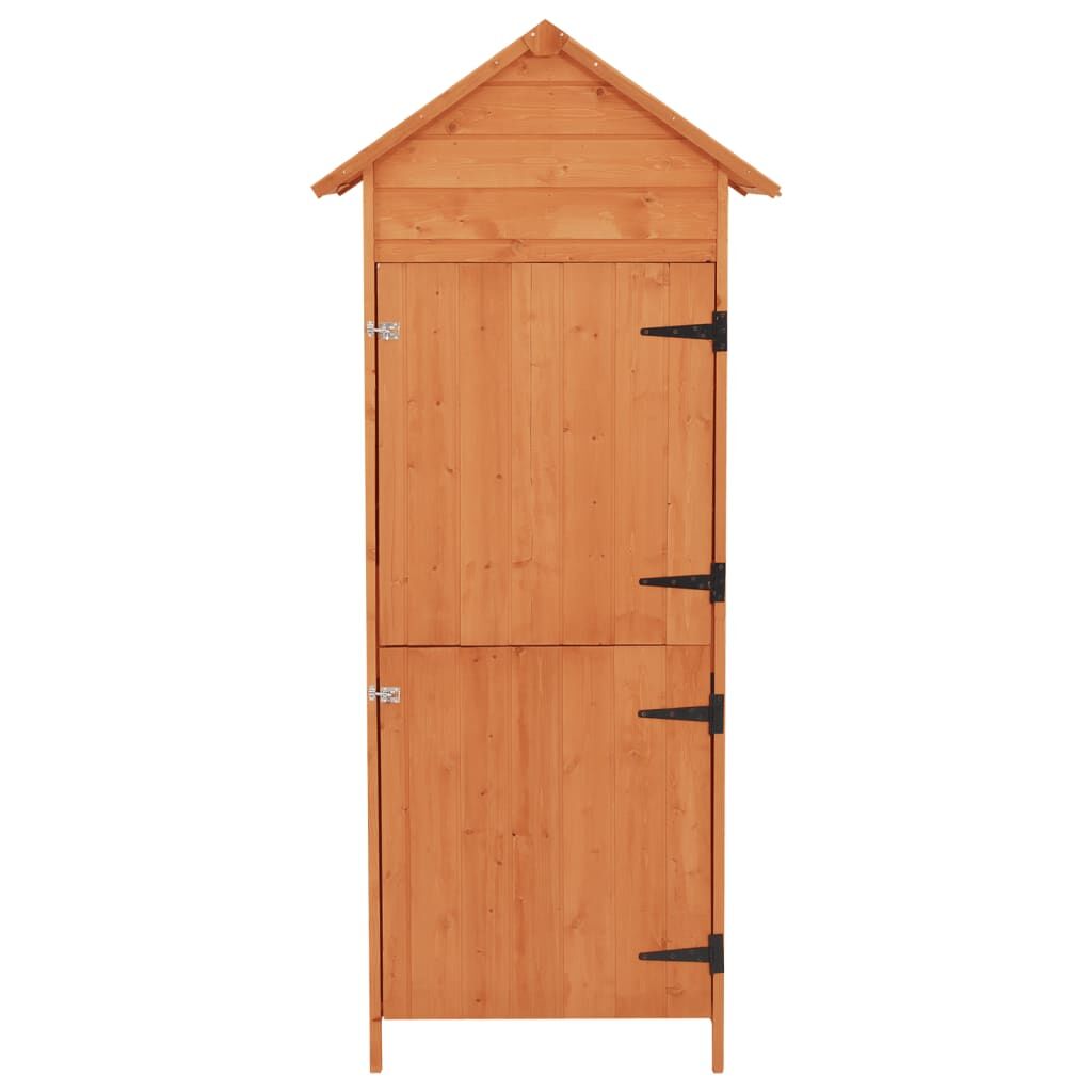This wooden cabinet, featuring a compact design and elegant look, will suit any outdoor space. The high-quality tool shed provides ample space for storing a wide variety of tools and equipment. Thanks to the solid wood frame, the storage cabinet is easy to clean, hard-wearing and suitable for daily use. The built-in two shelves will help to keep small items in order. The waterproof polyester roof and water-resistant paint finish also protect your items from moisture.