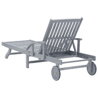 Relax and take a load off in your garden or patio on this comfortable wooden sun lounger! You can spend a relaxing afternoon in your own outdoor space. It is perfect for a pool, balcony, garden, etc. This outdoor sun lounger is made of solid acacia wood with a grey wash finishing, making it sturdy and stable. The backrest and footrest are adjustable, and you can lock the lounger into the desired position. This garden sun lounger can be easily moved around the house with equipped 2 wheels. The sunbed features a convenient pull-out table, to place your phone, sunglasses, drink and other small items. The cushion adds extra comfort for you while lounging. Each cushion features two sets of ropes so that you can fix it on the sun lounger tightly. Note: In order to extend the life of your outdoor furniture, we recommend you to protect it with a waterproof cover.