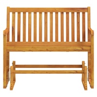 This classic wooden swing bench makes a timeless addition to your garden, terrace and patio. The glider bench is made of solid acacia wood, a tropical hardwood, with an oil finish, which is weather-resistant, highly durable and suitable for outdoor use. This distinctive bench allows you to rock back and forth, thanks to its rocking mechanism. It is relaxing and wonderful to enjoy gently swaying on the bench with your friend or loved one. Note: In order to extend the life of your outdoor furniture, we recommend you to clean it regularly and do not leave it outdoors without protection unnecessarily.Clean: Use a mild soap solution.Storing: If possible, store in a cool, dry place indoors. If the product is stored outdoors, protect it with a waterproof cover. Wipe and dry the excess water or snow from flat surfaces after a rain or snowfall. Allow sufficient air circulation to avoid moisture-related damage.