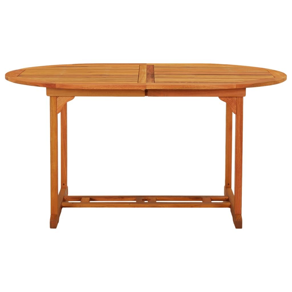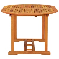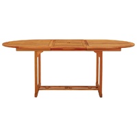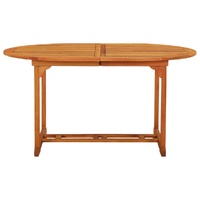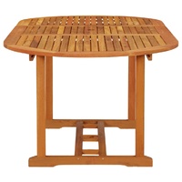 This extendable wooden garden table has a stylish design. It will be a great choice for alfresco dining in the garden or patio. Solid eucalyptus wood: Solid eucalyptus wood is a beautiful natural material. Eucalyptus wood is extremely dense and water repellent. The material is well-known for its rich reddish-brown colour.Extendable design: The wooden garden table is extendable, the table top can be enlarged to require a greater surface area when it is needed.Practical umbrella hole: This solid wood table features an umbrella hole to provide an appropriate spot for your umbrella to help you avoid sunlight and rain. Note:In order to extend the life of your outdoor furniture, we recommend you to clean it regularly and do not leave it outdoors without protection unnecessarily.Clean: Use a mild soap solution.Storing: If possible, store in a cool, dry place indoors. If the product is stored outdoors, protect it with a waterproof cover. Wipe and dry the excess water or snow from flat surfaces after a rain or snowfall. Allow sufficient air circulation to avoid moisture-related damage.