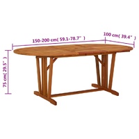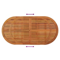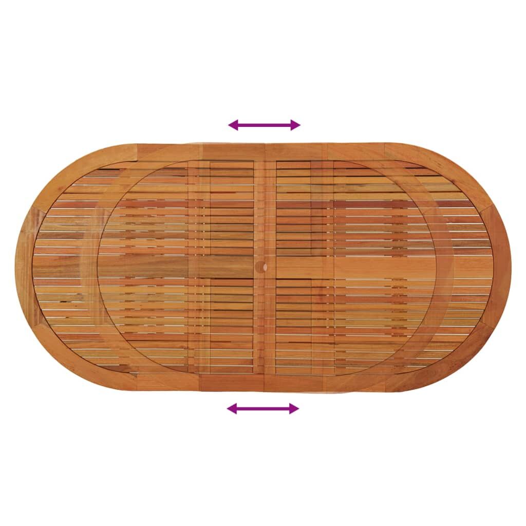 This extendable wooden garden table has a stylish design. It will be a great choice for alfresco dining in the garden or patio. Solid eucalyptus wood: Solid eucalyptus wood is a beautiful natural material. Eucalyptus wood is extremely dense and water repellent.Extendable design: The wooden garden table is extendable, the table top can be enlarged to require a greater surface area when it is needed.Practical umbrella hole: This solid wood table features an umbrella hole to provide an appropriate spot for your umbrella to help you avoid sunlight and rain. Note:In order to extend the life of your outdoor furniture, we recommend you to clean it regularly and do not leave it outdoors without protection unnecessarily.Clean: Use a mild soap solution.Storing: If possible, store in a cool, dry place indoors. If the product is stored outdoors, protect it with a waterproof cover. Wipe and dry the excess water or snow from flat surfaces after a rain or snowfall. Allow sufficient air circulation to avoid moisture-related damage.