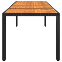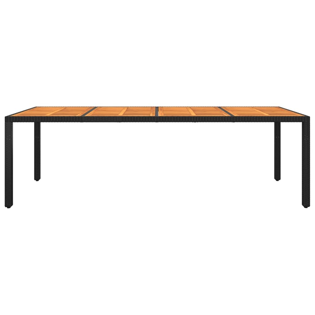 Combining both style and function, this garden table is the centerpiece of your garden, patio or any other living space. Featuring a powder-coated steel frame wrapped with poly rattan, the outdoor table is sturdy and stable. Its tabletop is made of solid acacia wood, a hardwood with dense grains. This beautifully-designed patio table is stable, durable and eye-catching. Additionally, the exquisite craftsmanship and beautiful wood grains make every piece slightly different from the next. Note: In order to extend the life of your outdoor furniture, we recommend you to clean it regularly and do not leave it outdoors without protection unnecessarily.Clean: Use a mild soap solution.Storing: If possible, store in a cool, dry place indoors. If the product is stored outdoors, protect it with a waterproof cover. Wipe and dry the excess water or snow from flat surfaces after a rain or snowfall. Allow sufficient air circulation to avoid moisture-related damage.