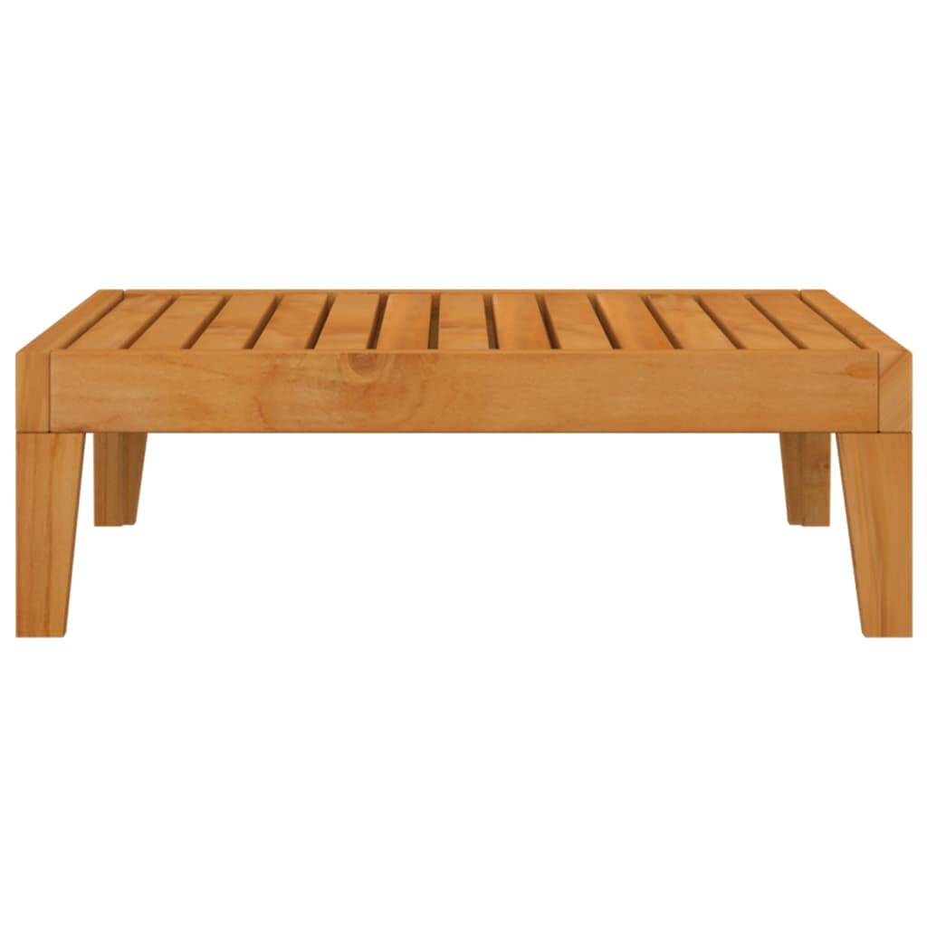 Enhance the livability factor in your outdoor sitting area with this wooden garden table. The garden table is made of solid acacia wood, a tropical hardwood, which is weather-resistant and highly durable. It has a solid construction and requires little maintenance. Together with cushions (not included), it can work as the ottoman, providing the utmost comfort for you and your guests. This wooden table is specially designed for serving as a part of a lounge set and it also can be used as a single table. You can combine it with other modular segments like middle sofa and corner sofa to create your own personal garden lounge set configurations! Note: In order to extend the life of your outdoor furniture, we recommend you to clean it regularly and do not leave it outdoors without protection unnecessarily.Clean: Use a mild soap solution.Storing: If possible, store in a cool, dry place indoors. If the product is stored outdoors, protect it with a waterproof cover. Wipe and dry the excess water or snow from flat surfaces after a rain or snowfall. Allow sufficient air circulation to avoid moisture-related damage.