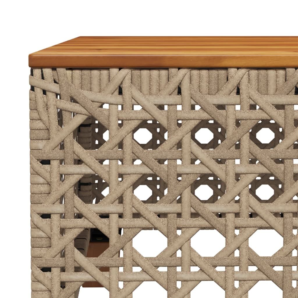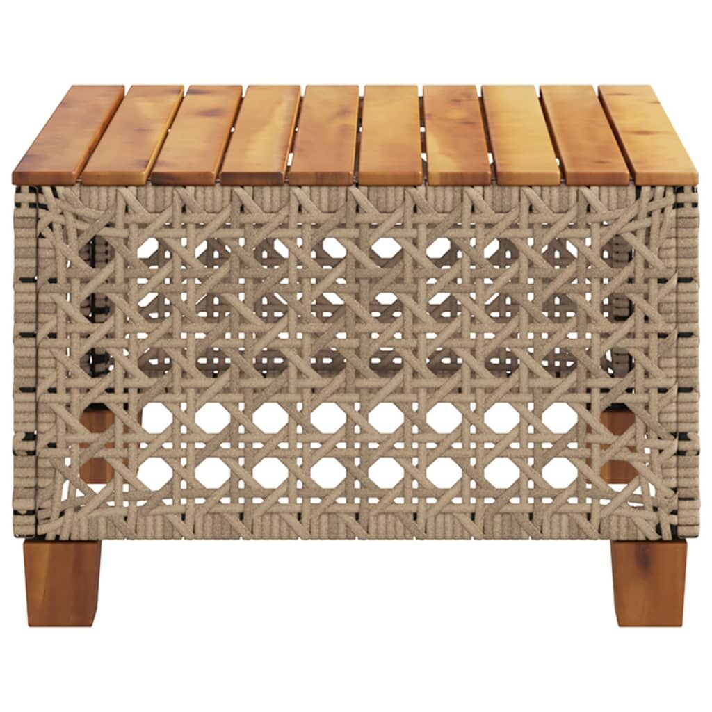 Gather around this garden table to enjoy a cup of coffee or have a chat with your family and friends in the garden, backyard, or on the patio! Durable material: PE rattan, also known as poly rattan, is a strong, low-maintenance synthetic material that looks like natural rattan. It's lightweight, easy to clean, and commonly used for outdoor furniture due to its durability and weather-resistant properties.Stable and easy-to-clean tabletop: This garden table has an acacia wood top that is sturdy, durable, and easy to clean with a damp cloth.Modular design: This garden sofa is designed as part of a lounge set, but can also be used as a separate sofa. You can combine it with other modular segments, such as a table, footrest, and other sofa elements, to create your own personal lounge set!Robust and stable frame: The powder-coated steel frame ensures that the garden furniture is strong and stable for daily outdoor use. Good to know:To make sure your outdoor furniture stays beautiful, we recommend protecting it with a waterproof cover.